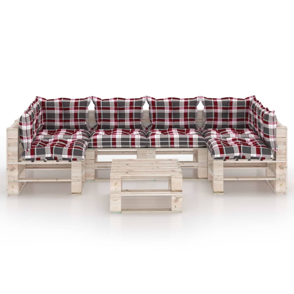 7-cz. zestaw mebli ogrodowych z palet, z poduszkami, sosna