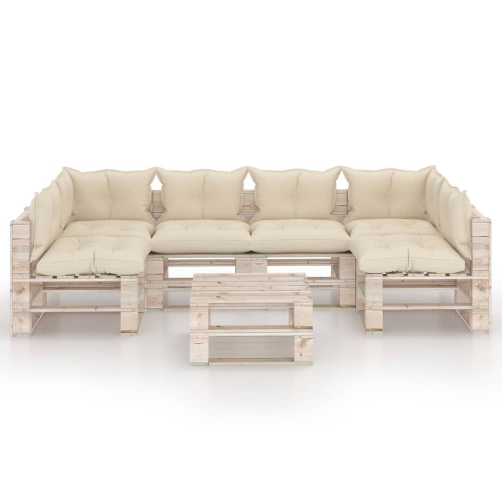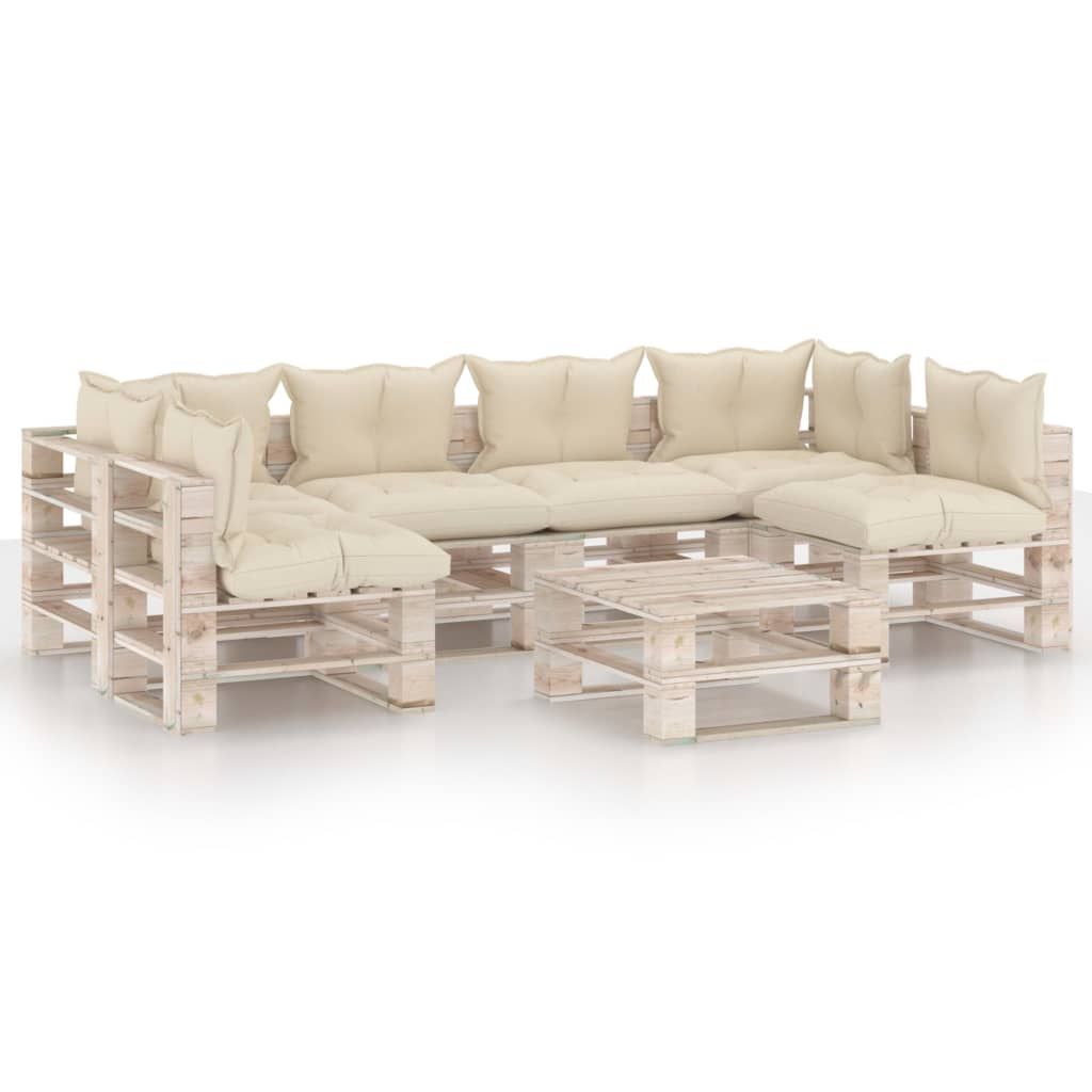 7-cz. zestaw mebli ogrodowych z palet, z poduszkami, sosna