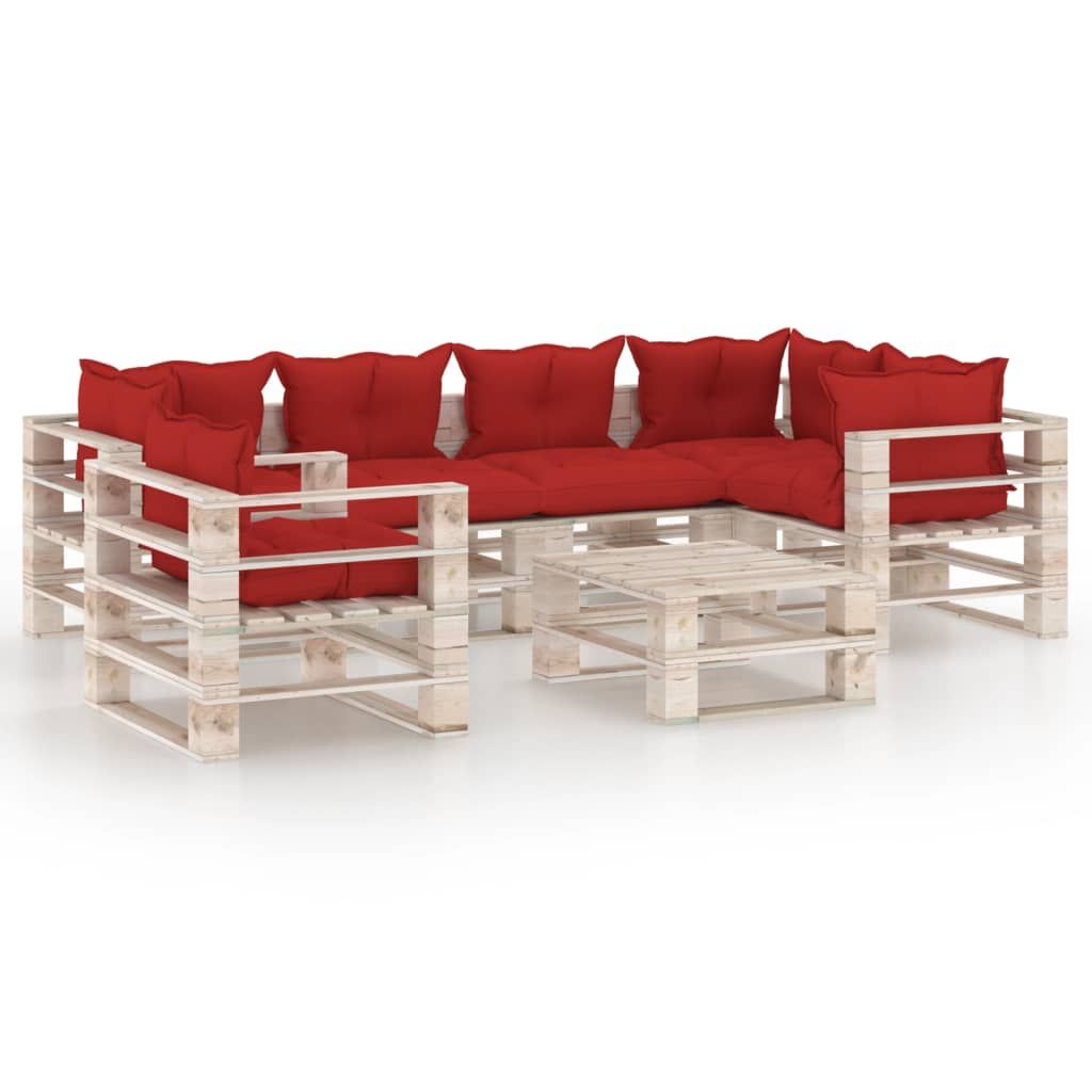 7-cz. zestaw mebli ogrodowych z palet, z poduszkami, sosna