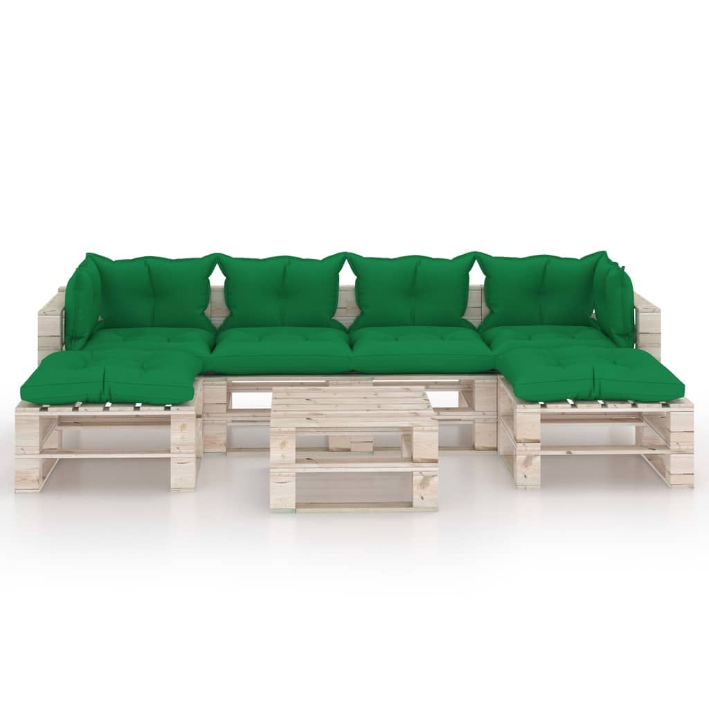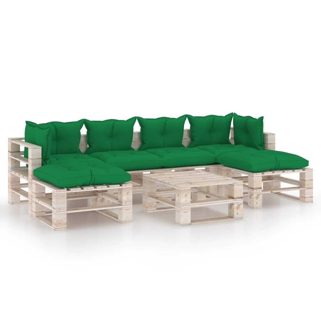 7-cz. zestaw mebli ogrodowych z palet, z poduszkami, sosna