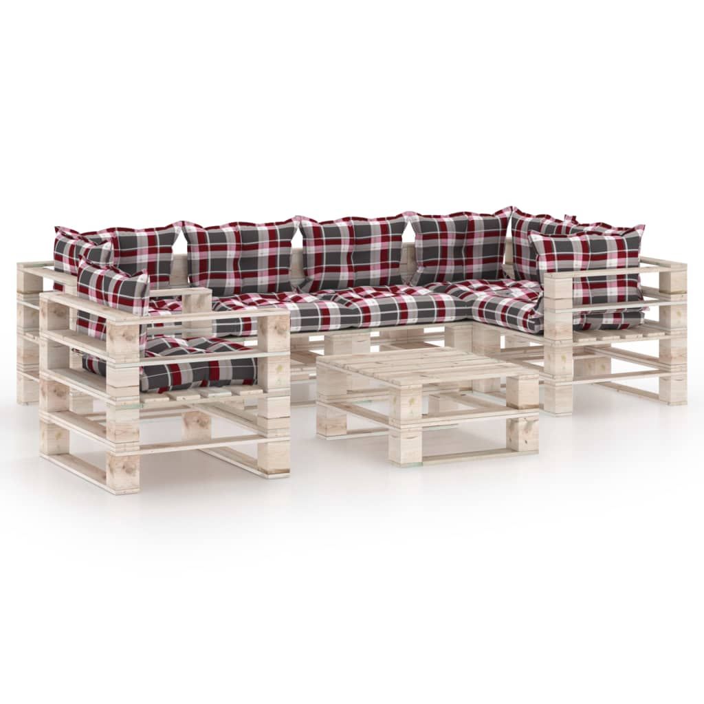 7-cz. zestaw mebli ogrodowych z palet, z poduszkami, sosna