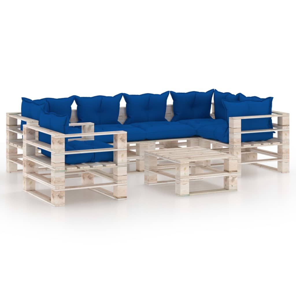 7-cz. zestaw mebli ogrodowych z palet, z poduszkami, sosna