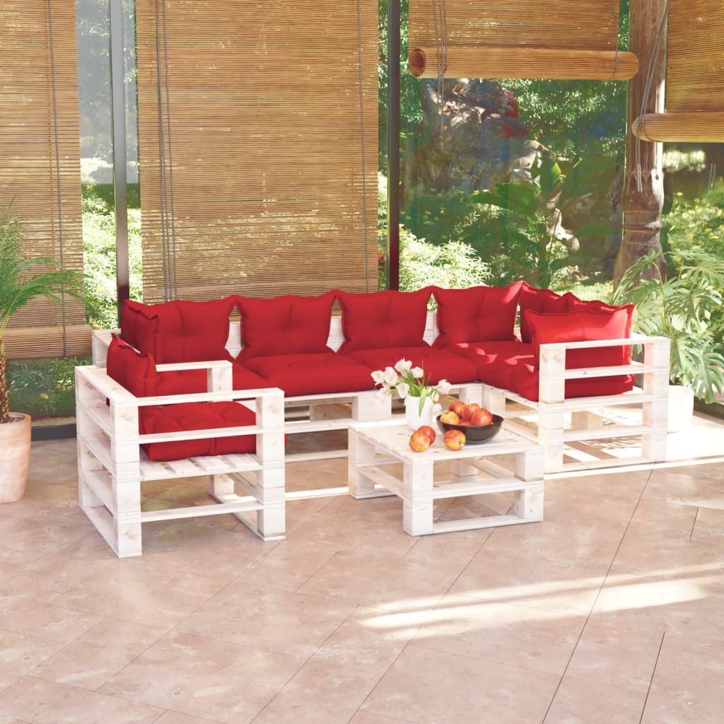7-cz. zestaw mebli ogrodowych z palet, z poduszkami, sosna