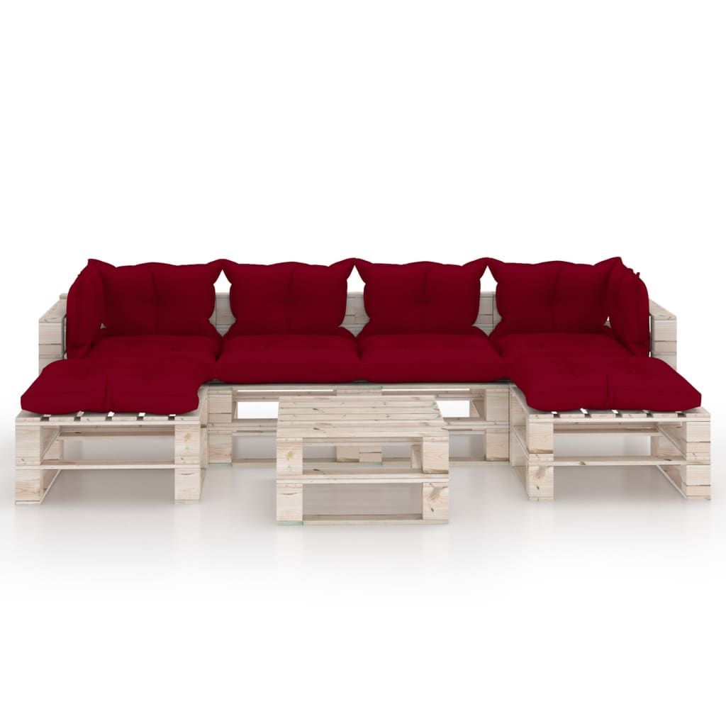 7-cz. zestaw mebli ogrodowych z palet, z poduszkami, sosna