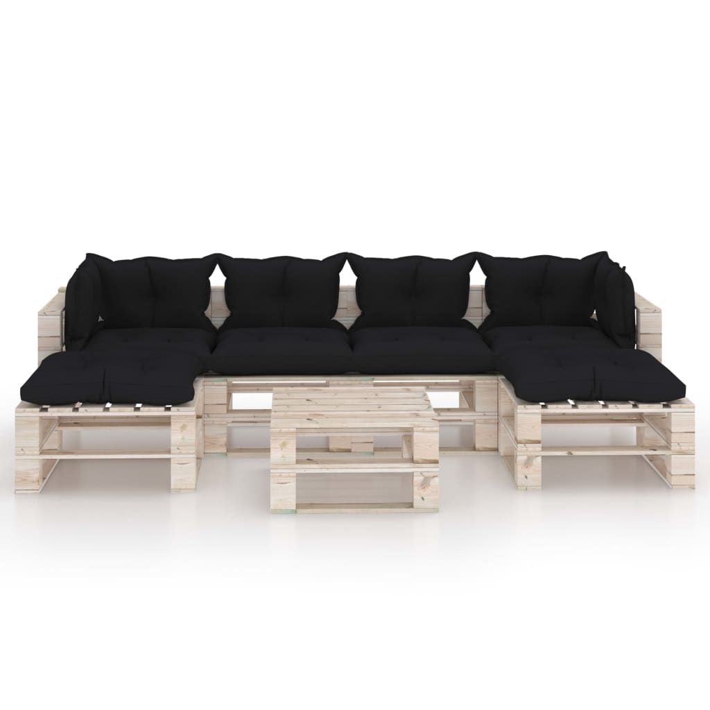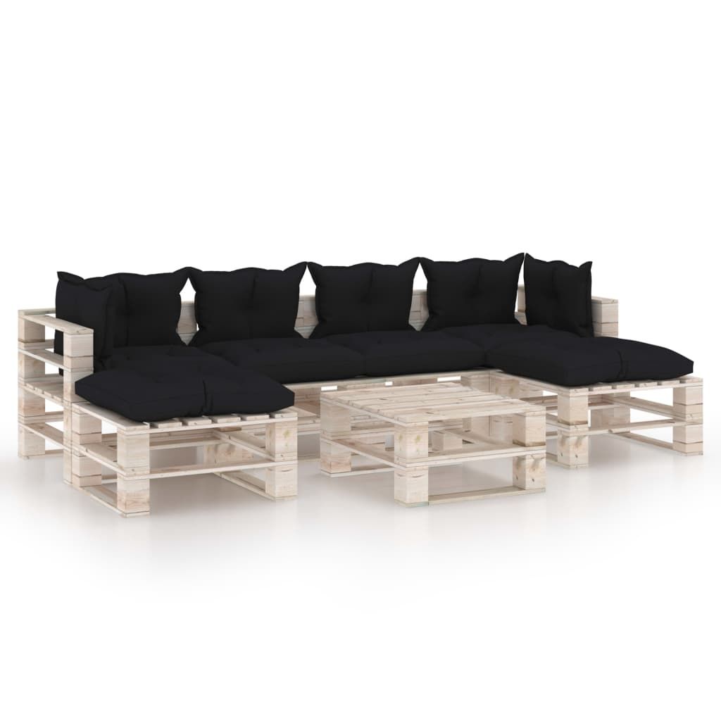 7-cz. zestaw mebli ogrodowych z palet, z poduszkami, sosna