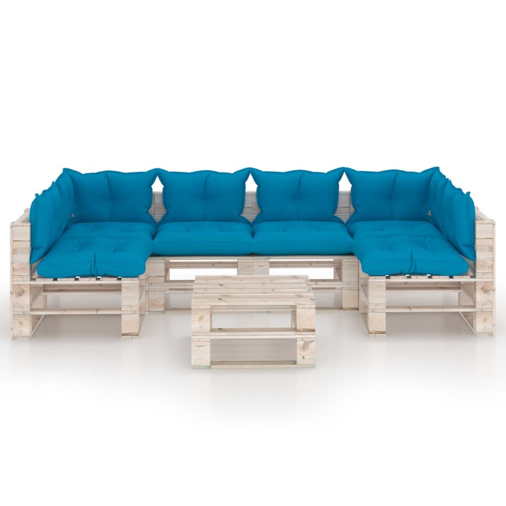 7-cz. zestaw mebli ogrodowych z palet, z poduszkami, sosna