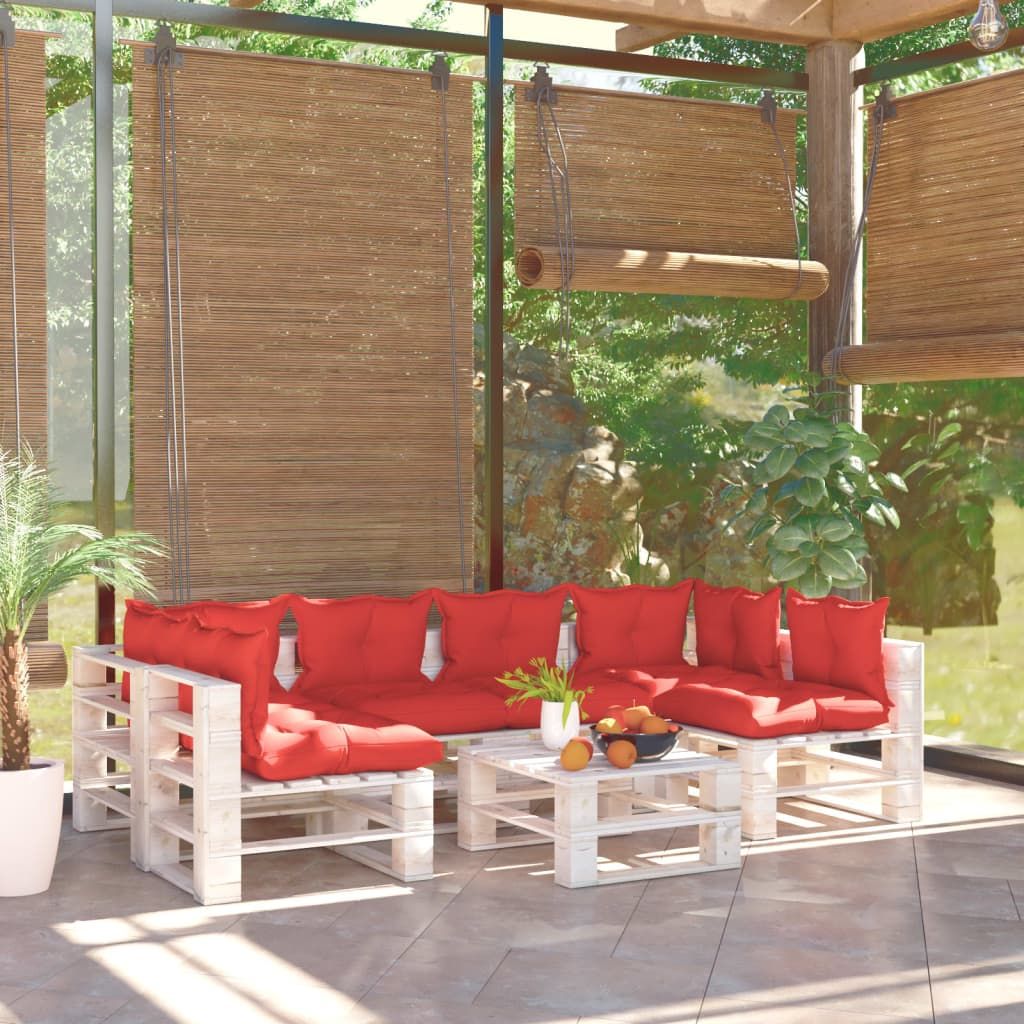 7-cz. zestaw mebli ogrodowych z palet, z poduszkami, sosna