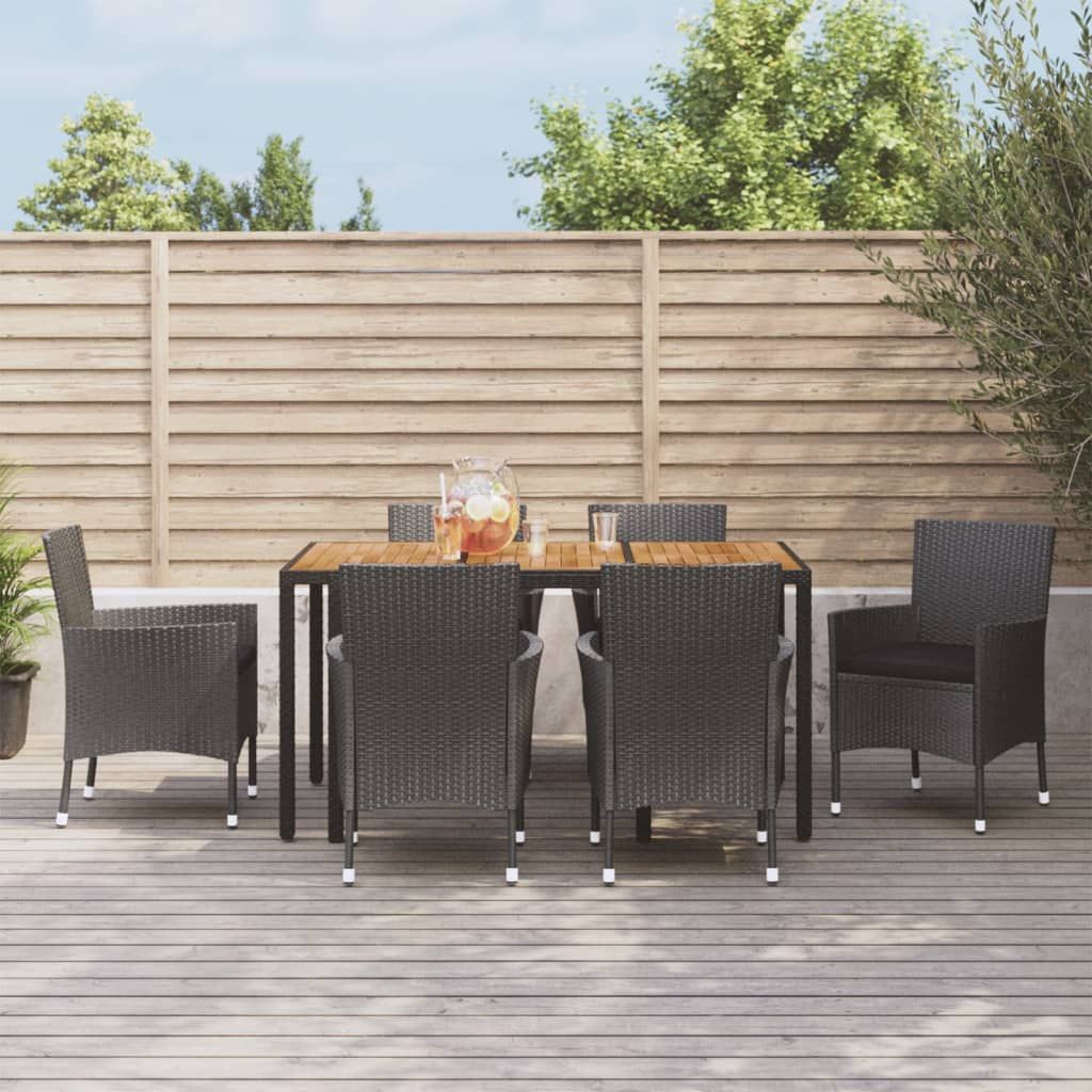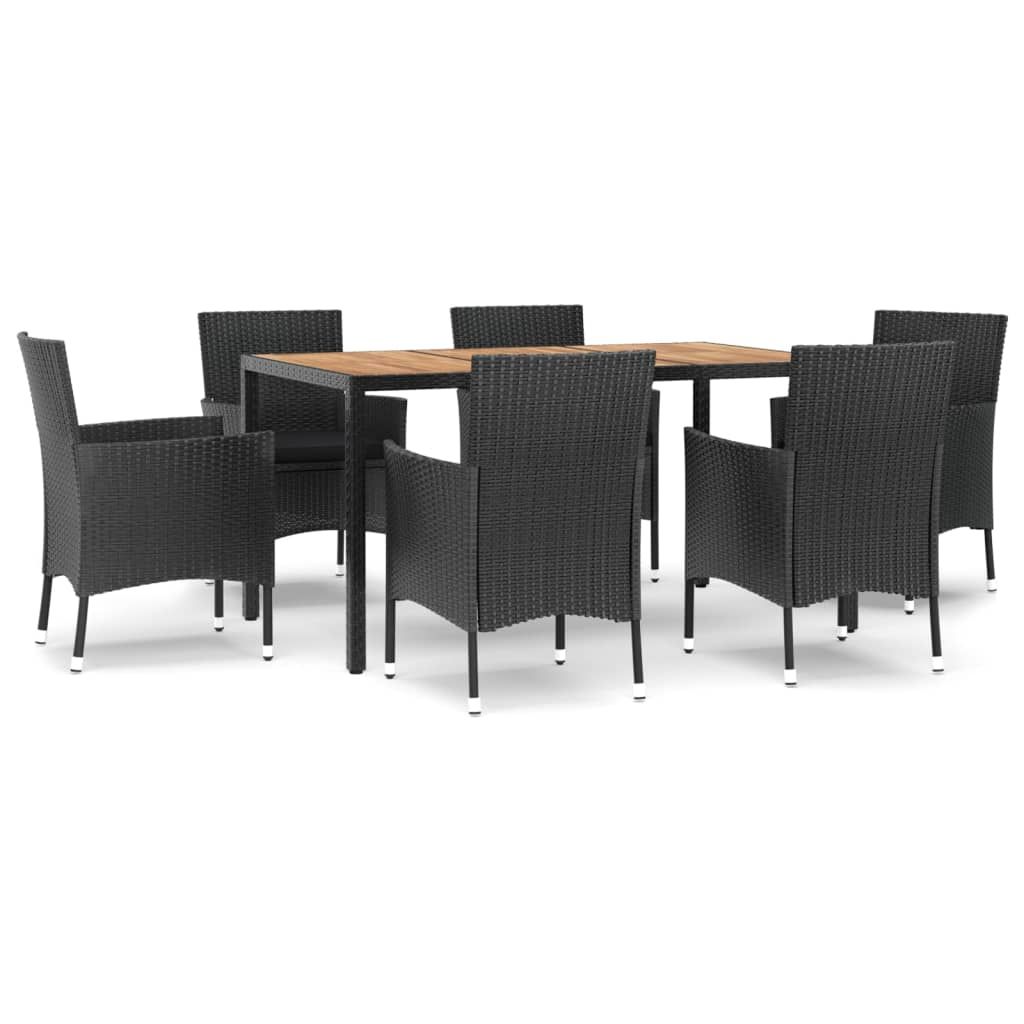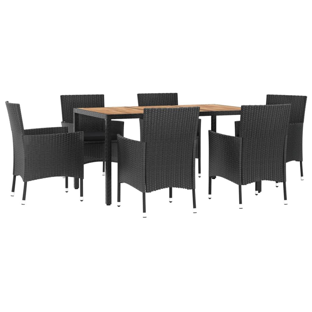 7-cz. zestaw mebli ogrodowych z poduszkami, czarny, polirattan