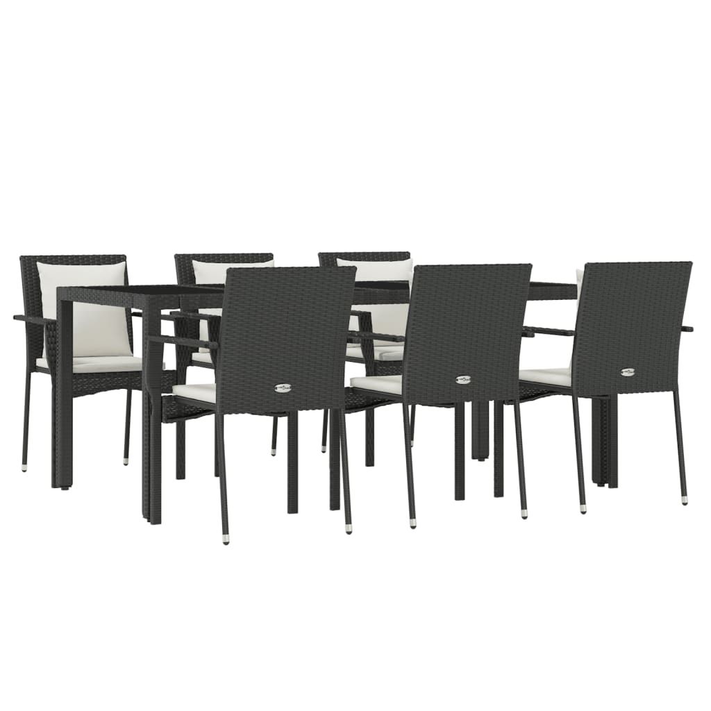 7-cz. zestaw mebli ogrodowych z poduszkami, czarny, polirattan