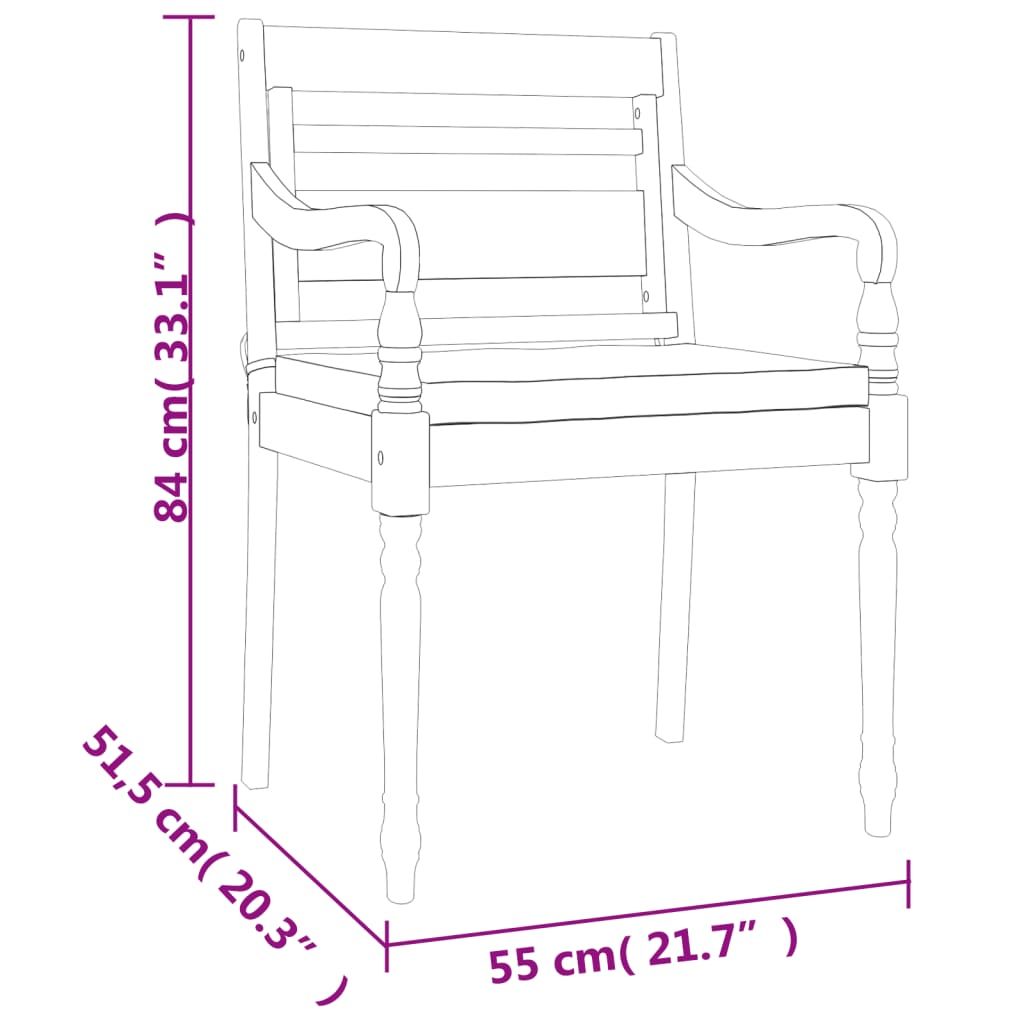 Drewniany zestaw mebli ogrodowych z poduszkami wniesie odrobinę stylu vintage do Twojego ogrodu, patio lub innej przestrzeni na świeżym powietrzu. Trwały materiał: lite drewno tekowe to piękny, naturalny materiał. Drewno było sezonowane, suszone komorowo, a następnie zostało wyszlifowane, aby nadać mu bardzo gładką powierzchnię. Drewno tekowe słynie z wyjątkowej wytrzymałości i odporności na czynniki pogodowe.Stabilna rama: drewniane ramy kompletu zapewniają jego solidność i stabilność.Praktyczny stół: stół oferuje dość miejsca na posiłki, napoje i przedmioty dekoracyjne.Komfort siedzenia: dzięki grubo wyściełanym poduszkom na siedziska meble są bardzo wygodne. Warto wiedzieć:Aby maksymalnie ułatwić montaż, każdy produkt jest dostarczany z instrukcją obsługi. Uwaga:Aby utrzymać meble ogrodowe w dobrej kondycji, zalecamy zabezpieczenie ich wodoodpornym pokrowcem.