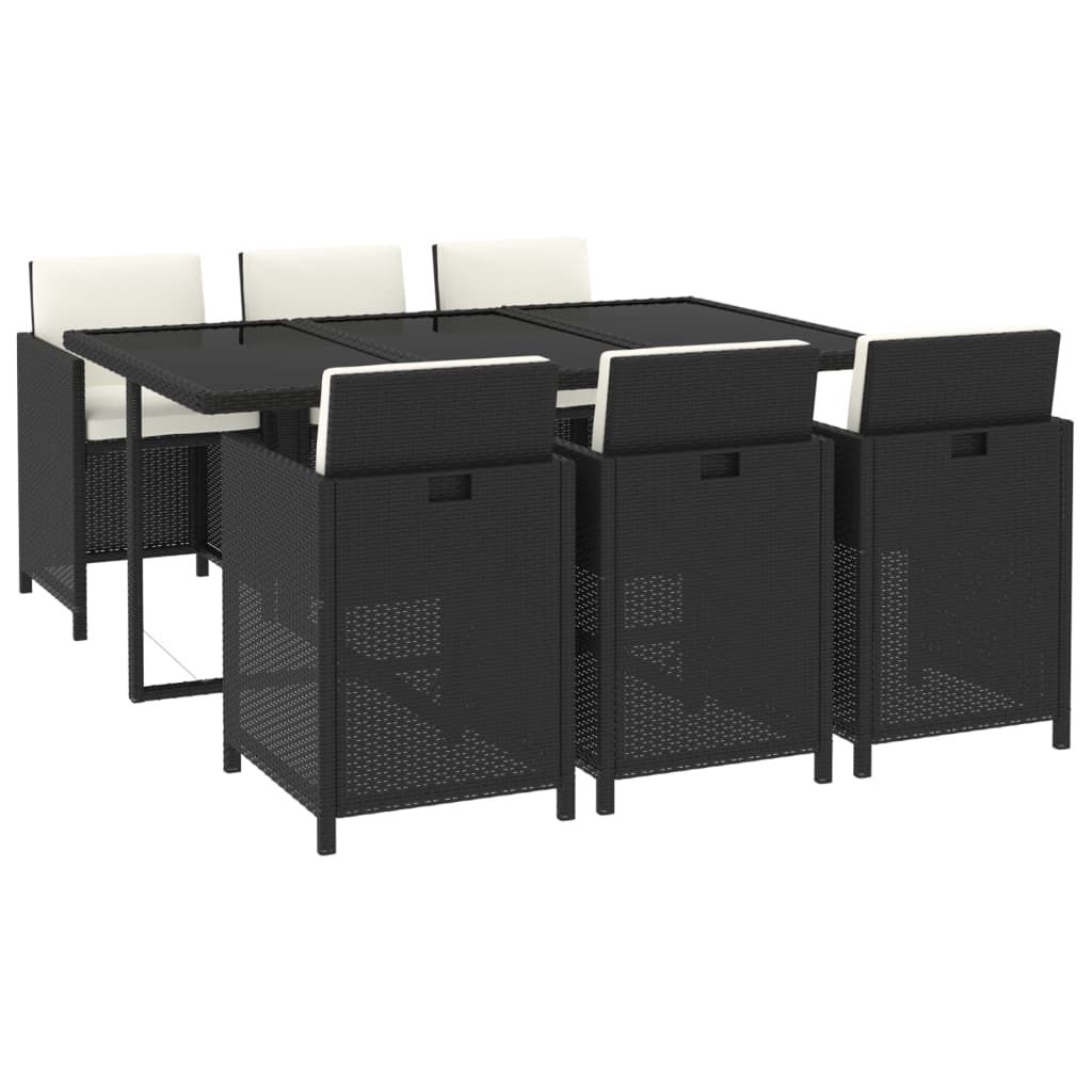 7-cz. zestaw mebli ogrodowych z poduszkami, polirattan, czarny
