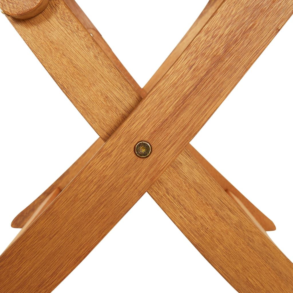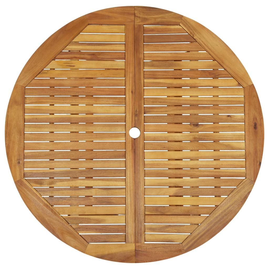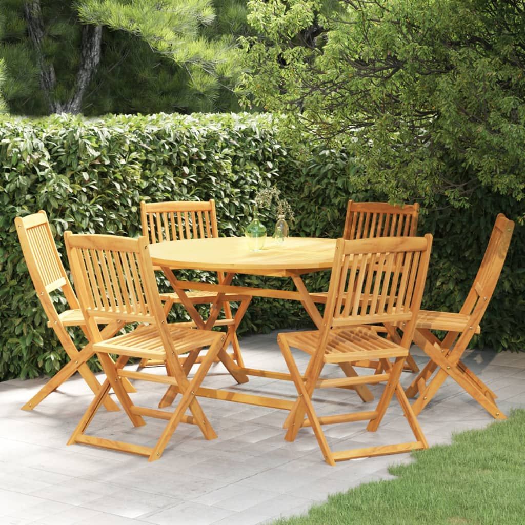 Usiądź do uroczej kolacji lub innego posiłku na świeżym powietrzu za sprawą tego składanego zestawu drewnianych mebli do ogrodu. Ten zestaw jadalniany wykonano z litego drewna akacjowego, dzięki czemu jest wytrzymały i stabilny. Powierzchnię wykończoną olejem można łatwo wyczyścić za pomocą wilgotnej ściereczki. Dodatkowo blat stolika ma pośrodku otwór na parasol. Stół i krzesła można złożyć, aby zaoszczędzić miejsce, gdy nie są używane.