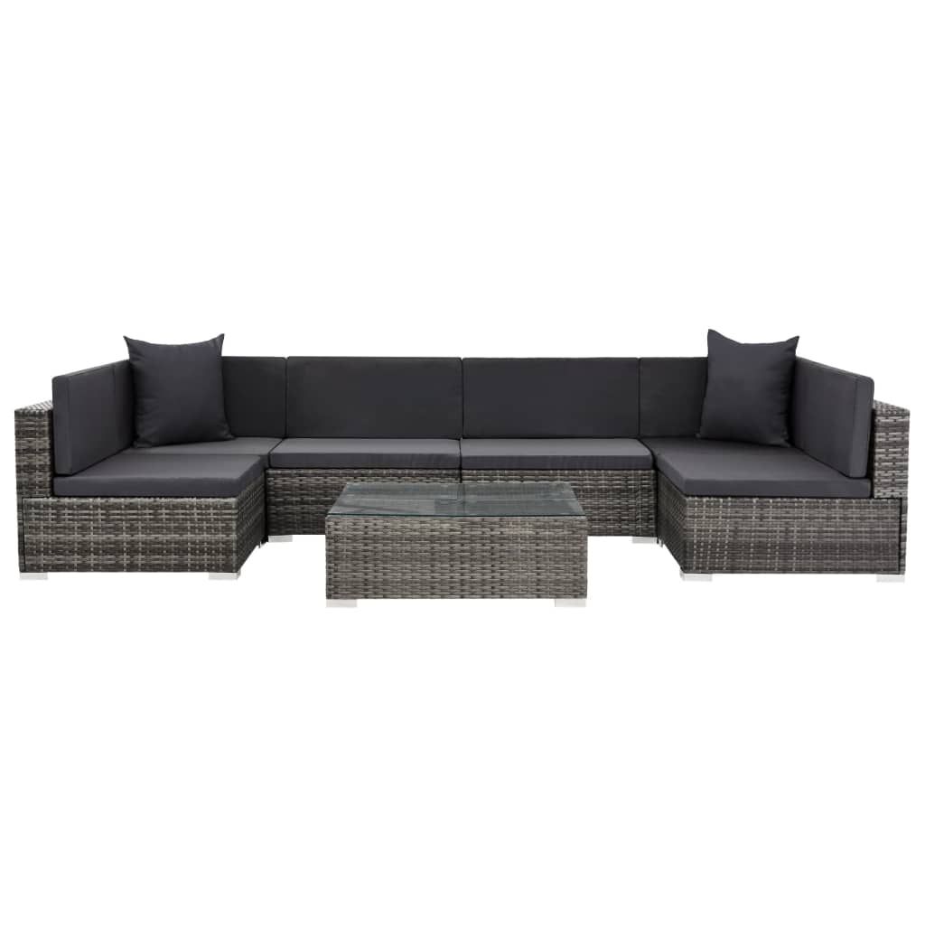 7-cz. zestaw wypoczynkowy do ogrodu, poduszki, rattan PE, szary