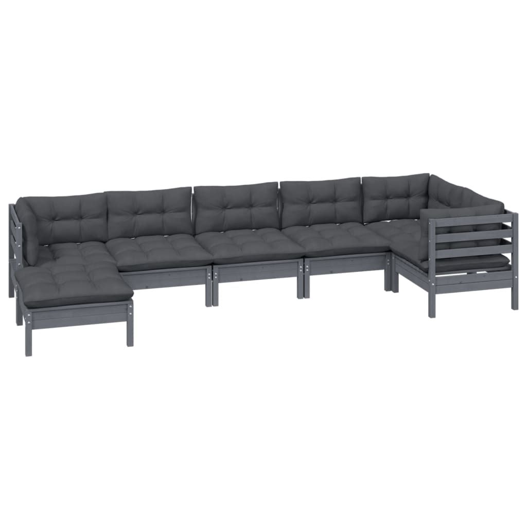 7-cz. zestaw wypoczynkowy do ogrodu, poduszki, szara sosna