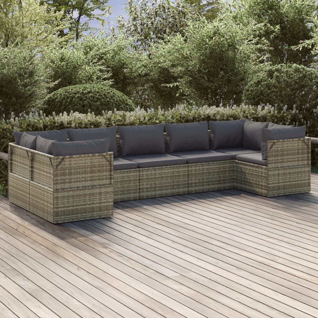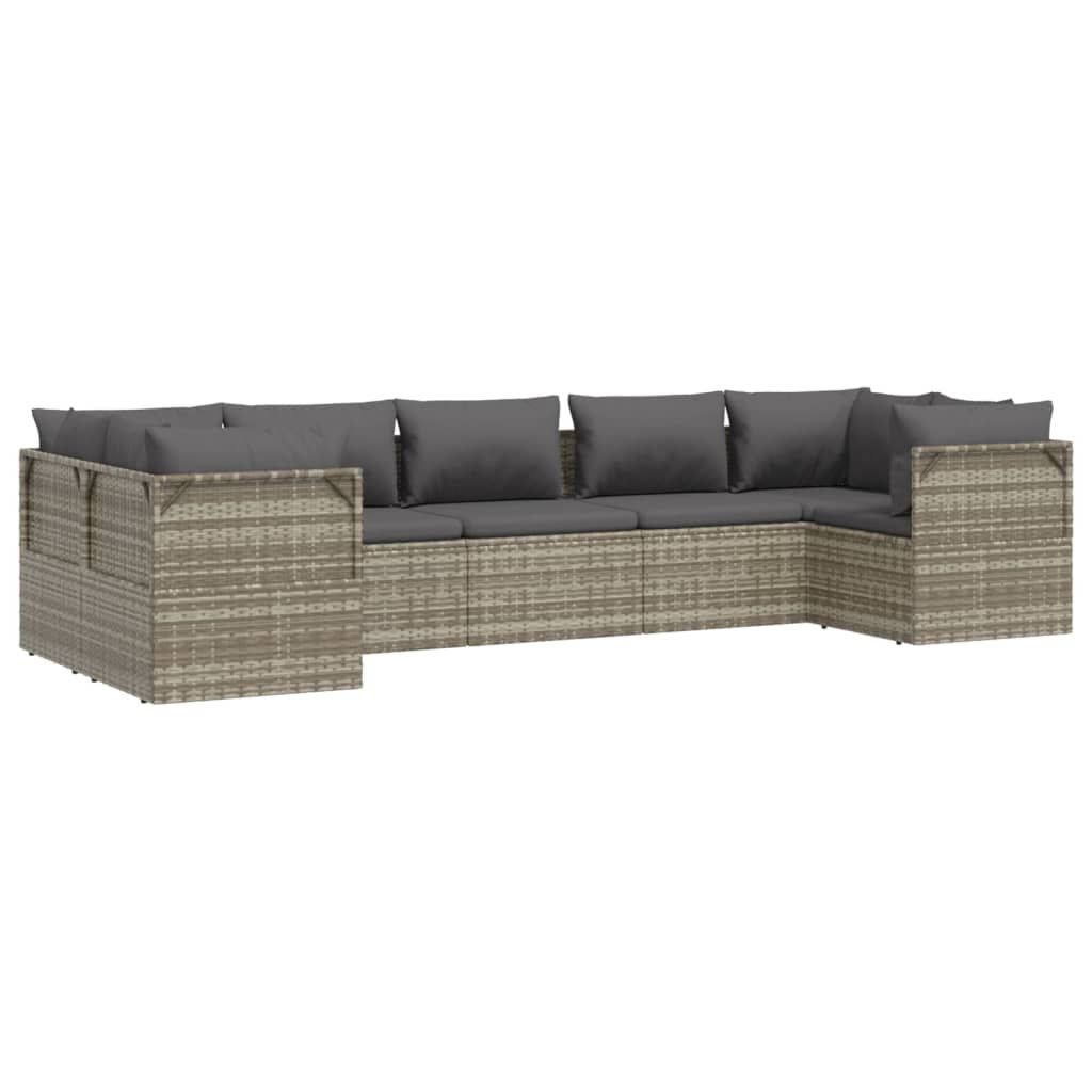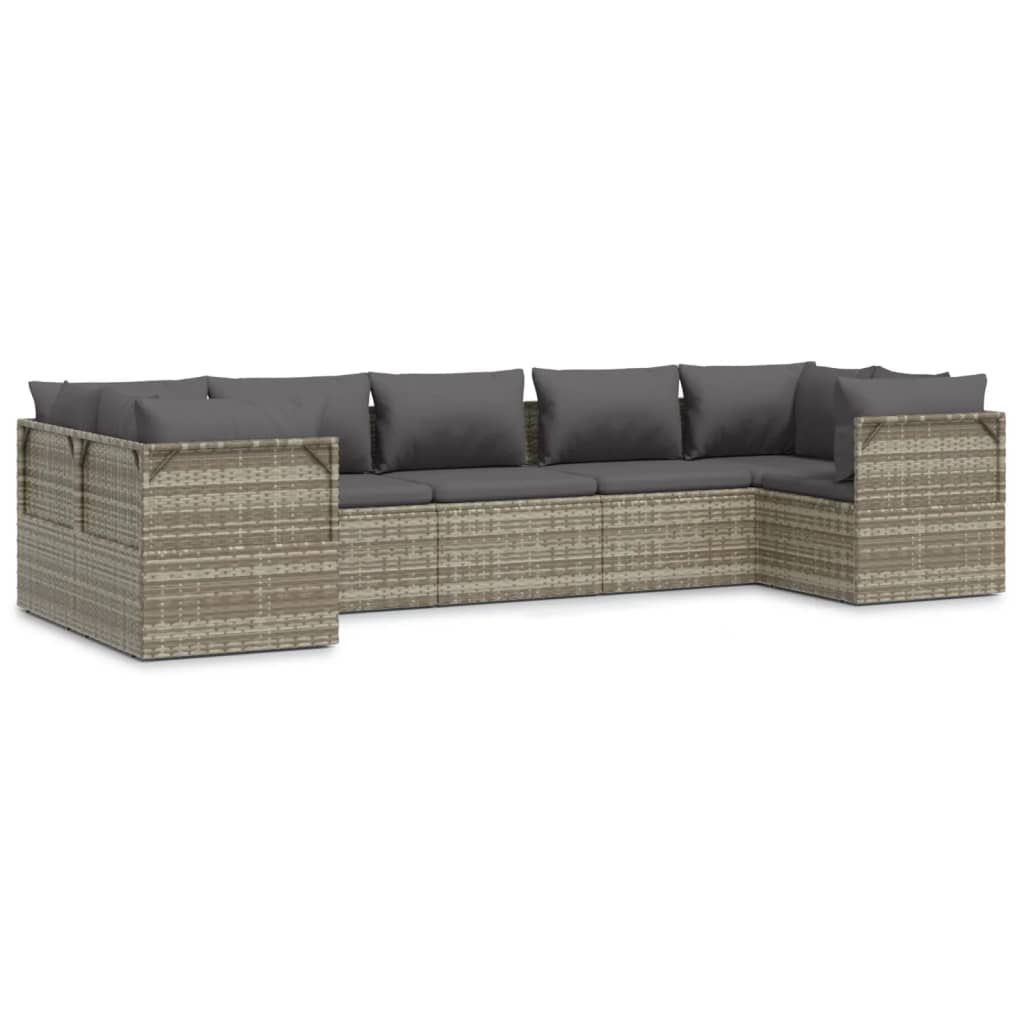 7-cz. zestaw wypoczynkowy do ogrodu, poduszki, szary, rattan PE