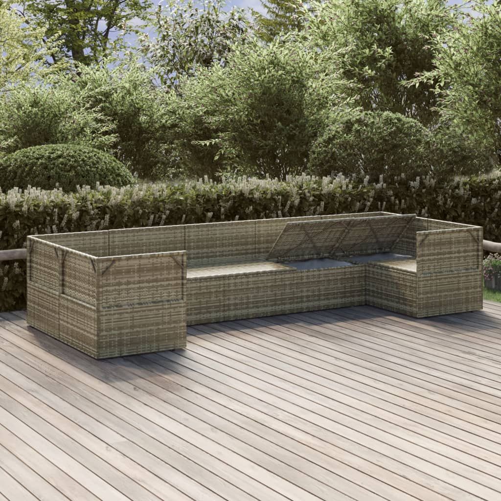Opis produktu: Ten modny zestaw wypoczynkowy do ogrodu, o eleganckim i współczesnym wyglądzie, będzie znakomitym wyborem do zjedzenia posiłku lub relaksu na świeżym powietrzu. Trwały materiał: polirattan to materiał niezwykle trwały i odporny na różne czynniki pogodowe. Jest też mało wymagający w utrzymaniu. Stalowa rama: rama ze stali gwarantuje solidność i stabilność konstrukcji.Wygodne siedzisko: dla Twojej wygody do zestawu dołączono poduszki.Dużo miejsca do przechowywania: przestrzeń do przechowywania ułatwia uporządkowanie rzeczy. Sprawdzi się ono do przechowywania poduszek, koców, zabawek i innych przedmiotów.Wodoszczelna torba: wodoszczelna torba z pokrywą, zamkiem i zapięciem na rzep ochroni Twoje rzeczy przed wilgocią. Uwaga:Aby przedłużyć żywotność mebli ogrodowych, zalecamy zabezpieczenie ich wodoodpornym pokrowcem.Każdy produkt jest dostarczany wraz z instrukcją montażu dla ułatwienia tej czynności.