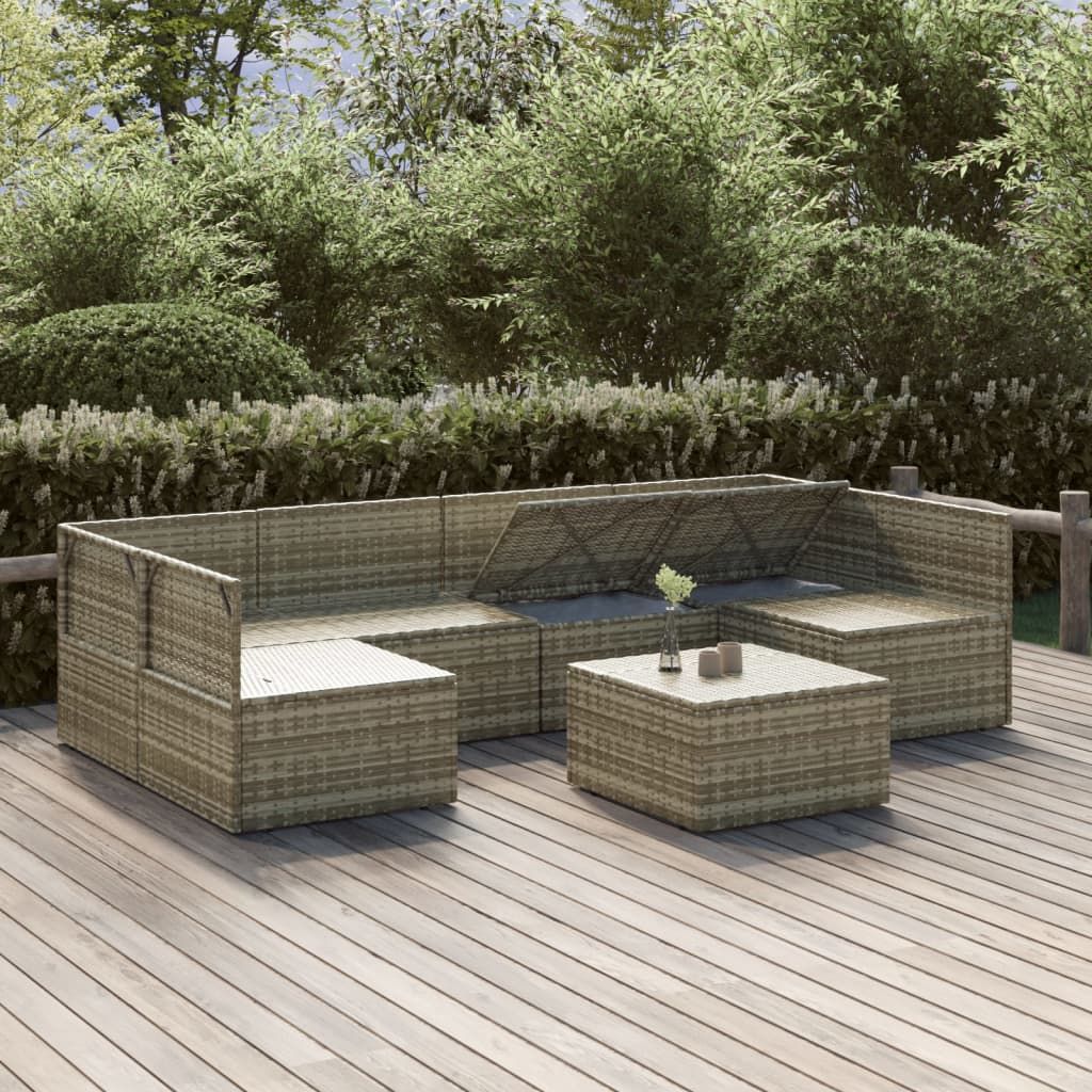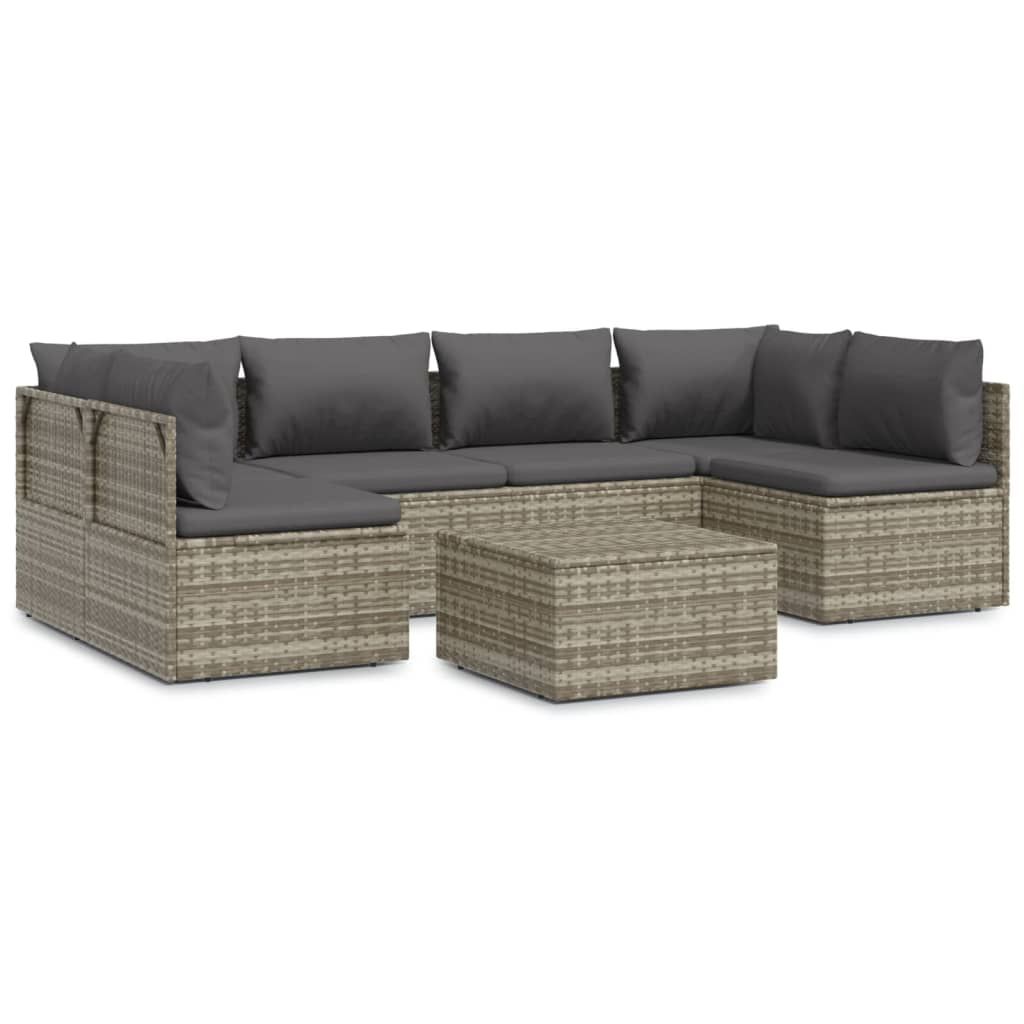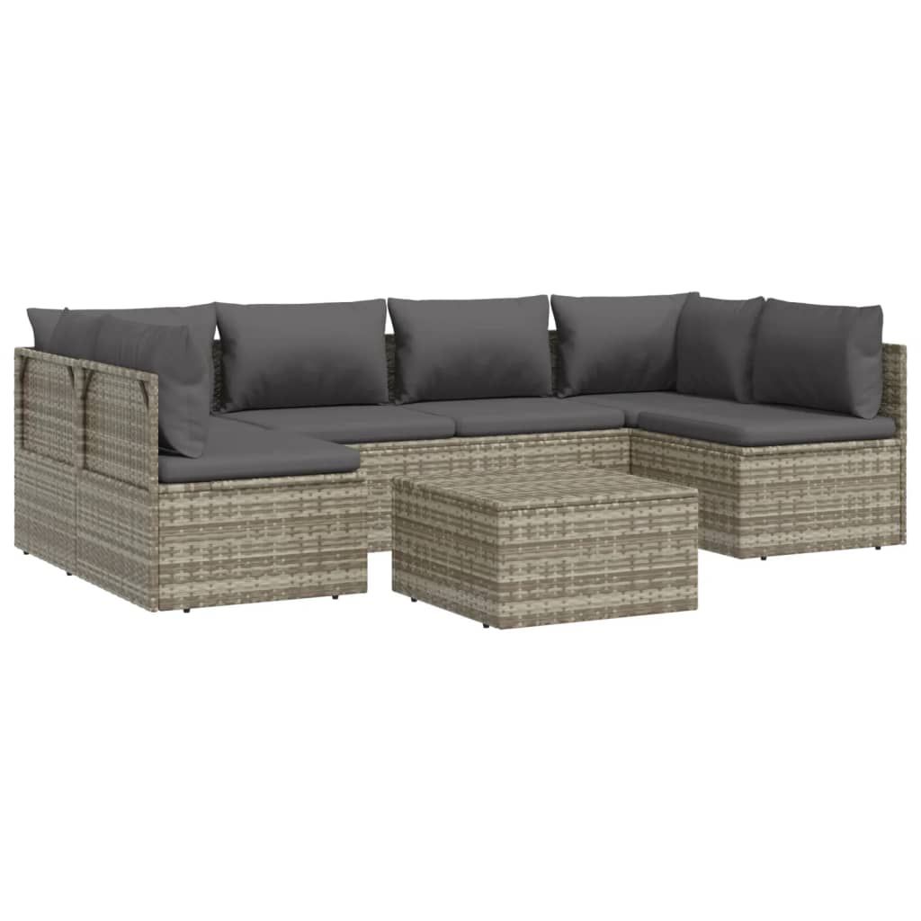 7-cz. zestaw wypoczynkowy do ogrodu, poduszki, szary, rattan PE