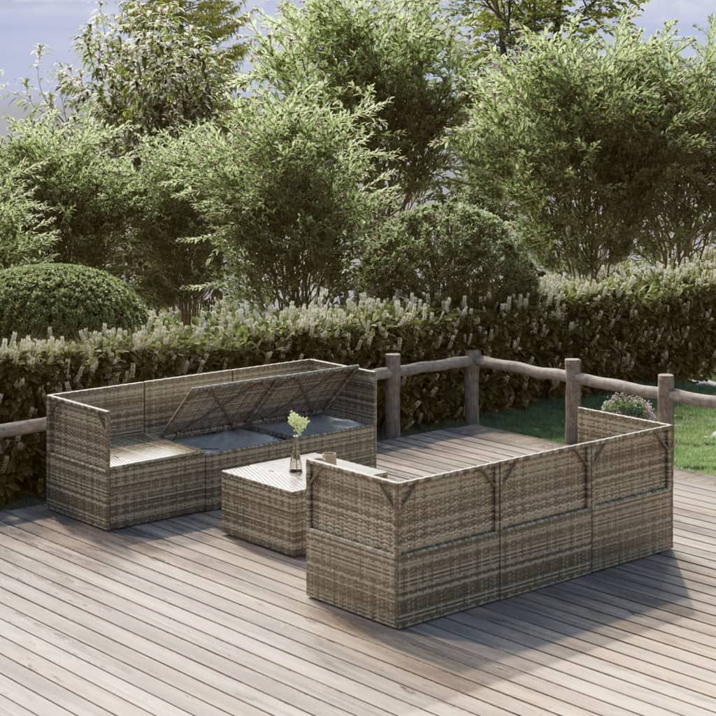 Opis produktu: Ten modny zestaw wypoczynkowy do ogrodu, o eleganckim i współczesnym wyglądzie, będzie znakomitym wyborem do zjedzenia posiłku lub relaksu na świeżym powietrzu. Trwały materiał: polirattan to materiał niezwykle trwały i odporny na różne czynniki pogodowe. Jest też mało wymagający w utrzymaniu. Stalowa rama: rama ze stali gwarantuje solidność i stabilność konstrukcji.Wygodne siedzisko: dla Twojej wygody do zestawu dołączono poduszki.Dużo miejsca do przechowywania: przestrzeń do przechowywania ułatwia uporządkowanie rzeczy. Sprawdzi się ono do przechowywania poduszek, koców, zabawek i innych przedmiotów.Wodoszczelna torba: wodoszczelna torba z pokrywą, zamkiem i zapięciem na rzep ochroni Twoje rzeczy przed wilgocią. Uwaga:Aby przedłużyć żywotność mebli ogrodowych, zalecamy zabezpieczenie ich wodoodpornym pokrowcem.Każdy produkt jest dostarczany wraz z instrukcją montażu dla ułatwienia tej czynności.