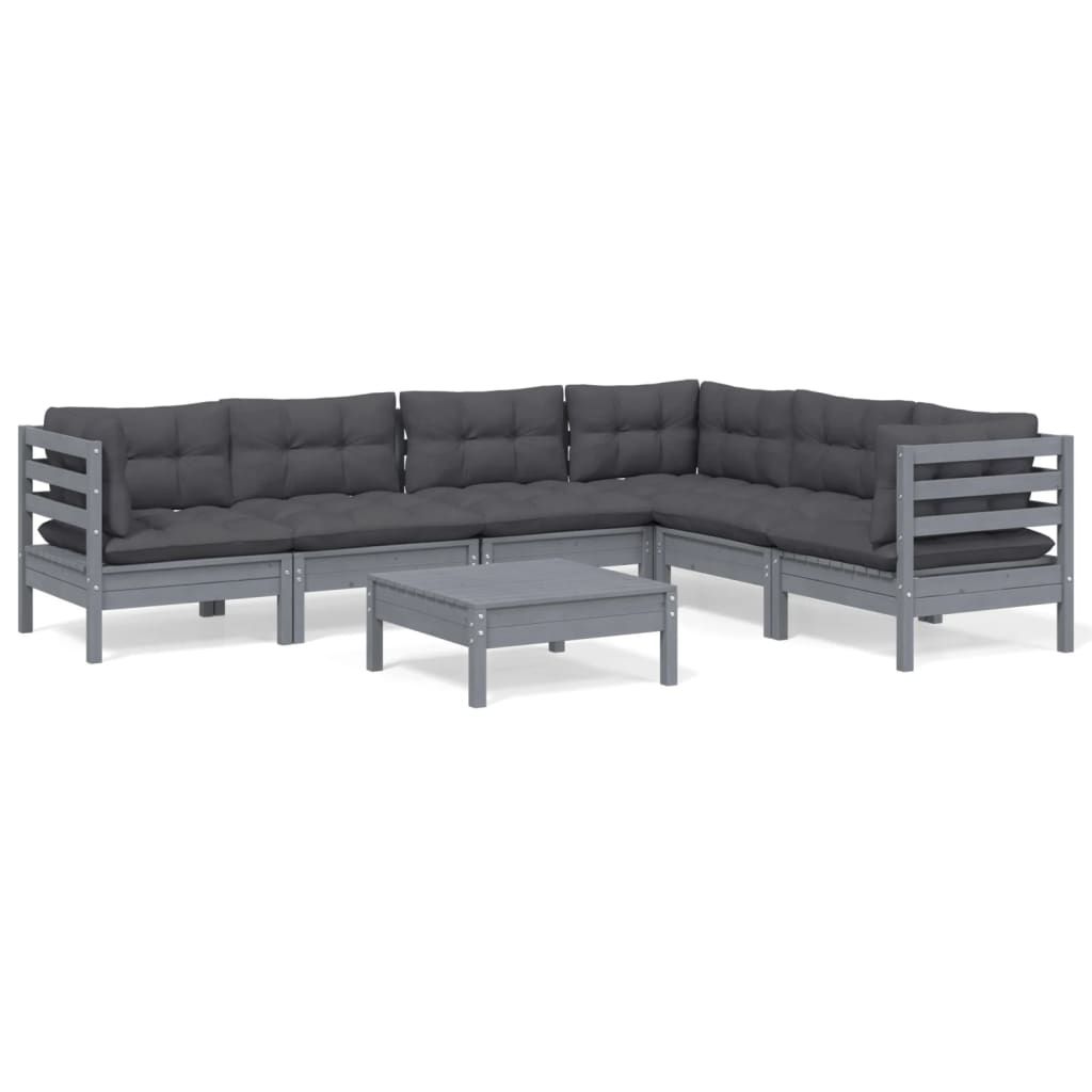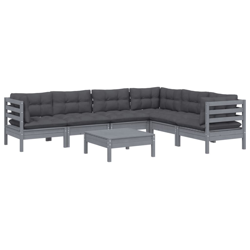 7-cz. zestaw wypoczynkowy do ogrodu, poduszki, szary, sosnowy