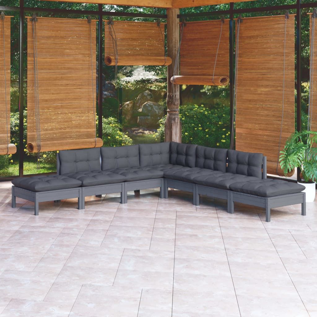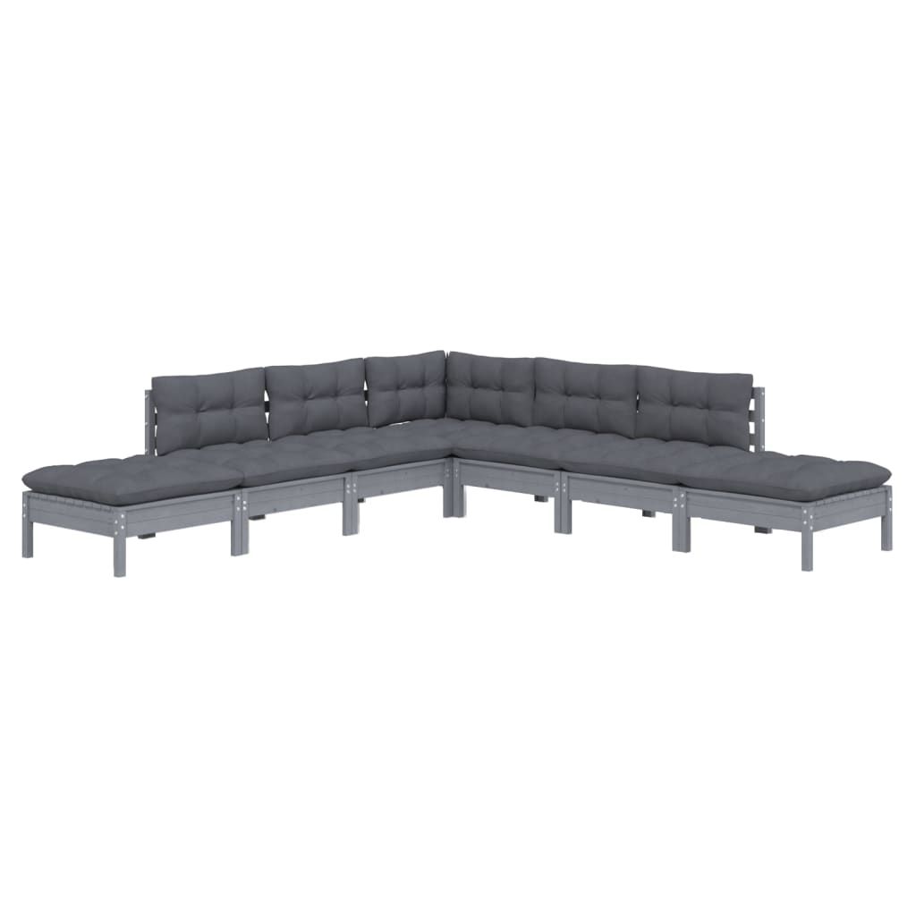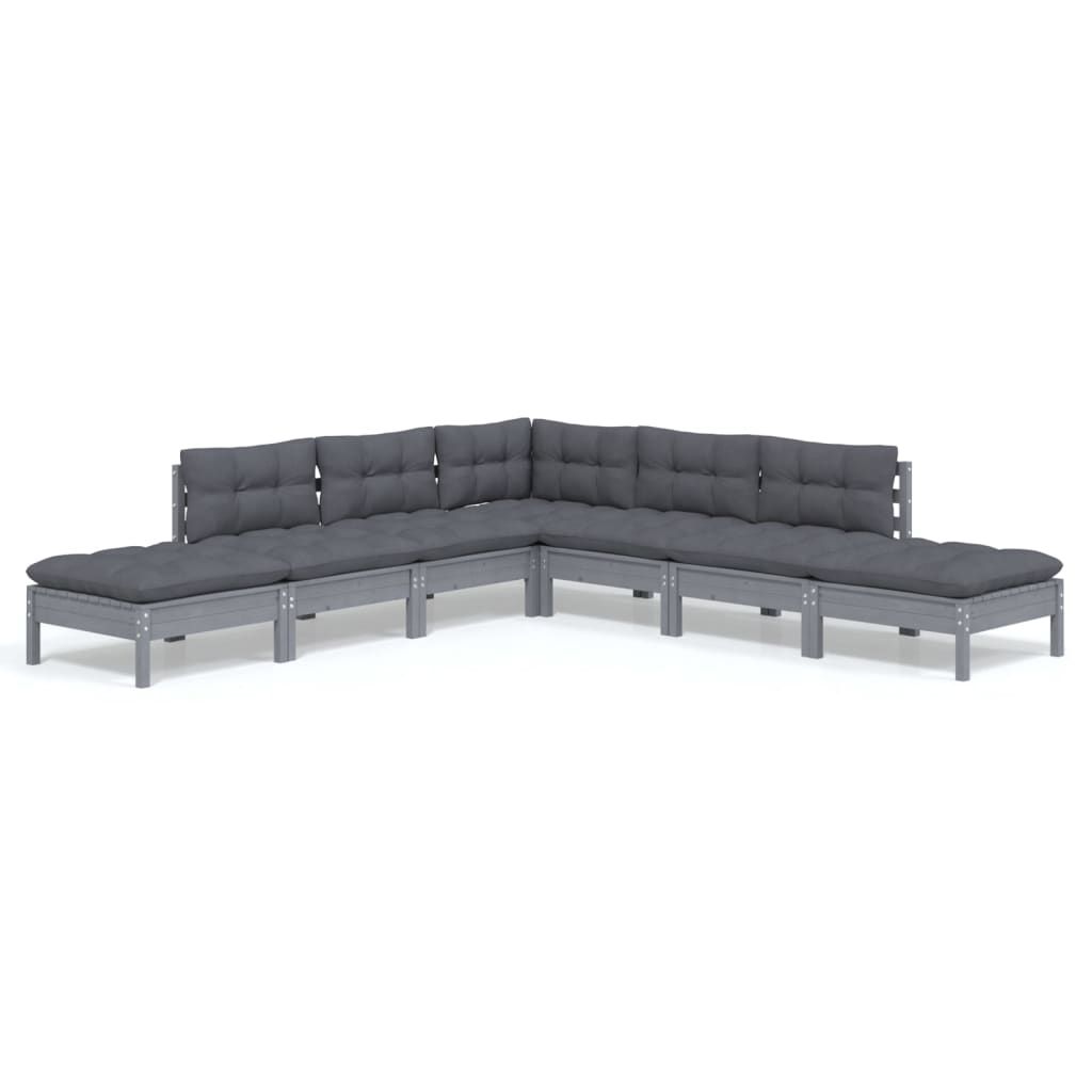 7-cz. zestaw wypoczynkowy do ogrodu, poduszki, szary, sosnowy
