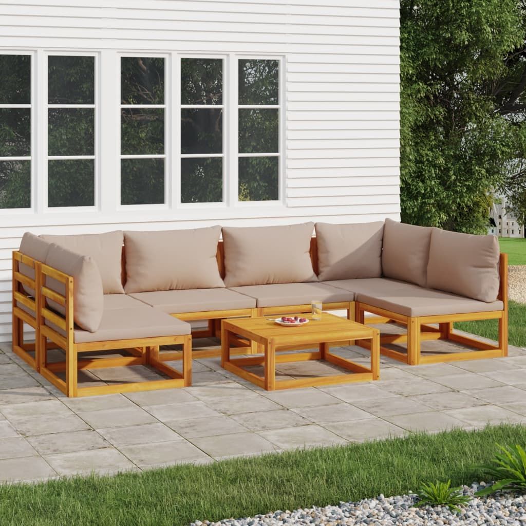 7-cz. zestaw wypoczynkowy do ogrodu, poduszki taupe, drewno