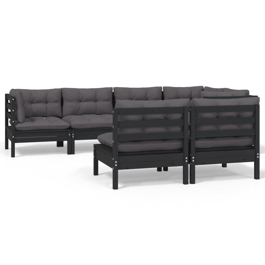 7-cz. zestaw wypoczynkowy do ogrodu, z poduszkami, czarna sosna
