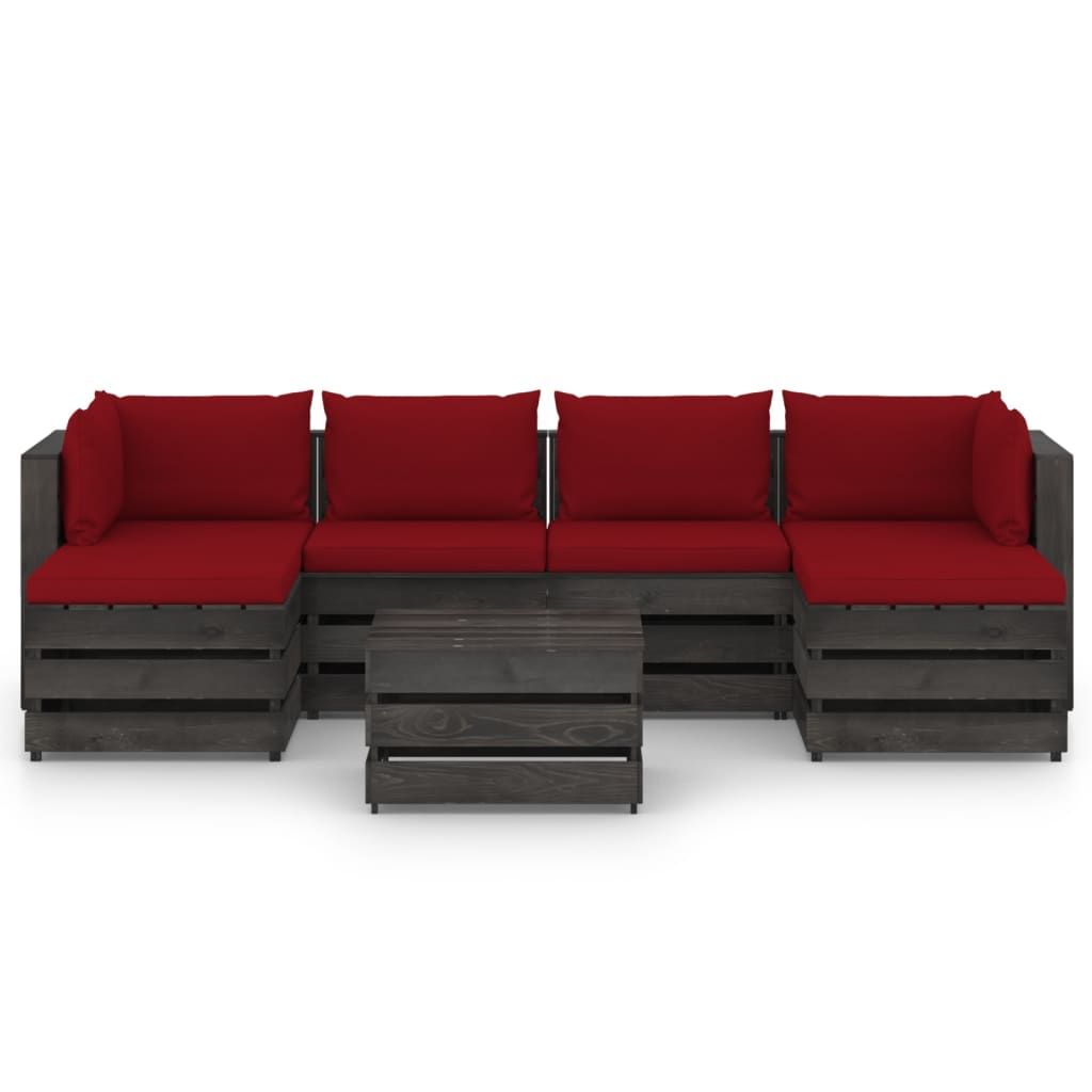 Opis produktu: Ten ogrodowy zestaw wypoczynkowy stanowi znakomity wybór, aby się zrelaksować i nacieszyć dobrą pogodą albo zdrzemnąć lub porozmawiać z rodziną i przyjaciółmi. Za sprawą ponadczasowej konstrukcji z palet wniesie on odrobinę rustykalnego uroku na Twoje patio, do ogrodu lub do salonu. Wykonany z impregnowanego drewna sosnowego zestaw wypoczynkowy z palet jest trwały, odporny na czynniki atmosferyczne i przyjazny dla środowiska. Ma on solidną konstrukcję i nie wymaga zbyt wielu czynności konserwacyjnych. W połączeniu z grubo wyściełanymi poduszkami zapewnia najwyższy komfort. Dodatkowo modułowa konstrukcja umożliwia ustawienie go w dowolnej aranżacji, zgodnie z własnym gustem. Uwaga: aby przedłużyć żywotność mebli ogrodowych, zalecamy zabezpieczenie ich wodoodpornym pokrowcem.