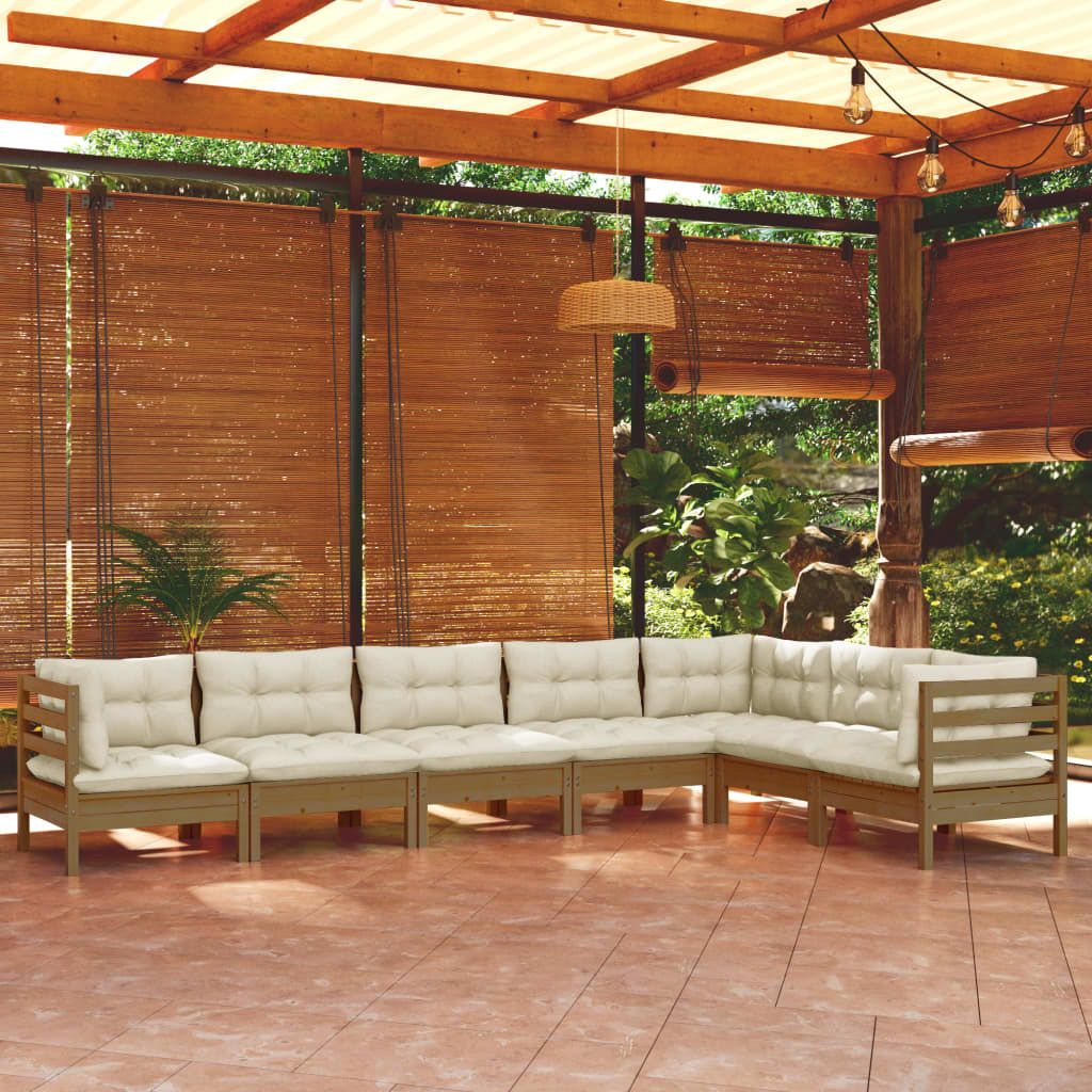 7-cz. zestaw wypoczynkowy do ogrodu, z poduszkami, miodowy brąz