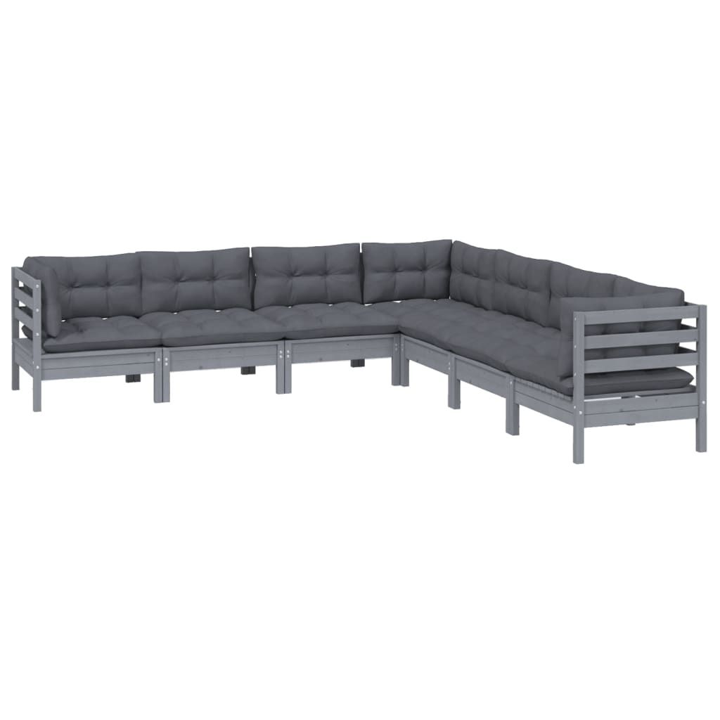 7-cz. zestaw wypoczynkowy do ogrodu, z poduszkami, szara sosna