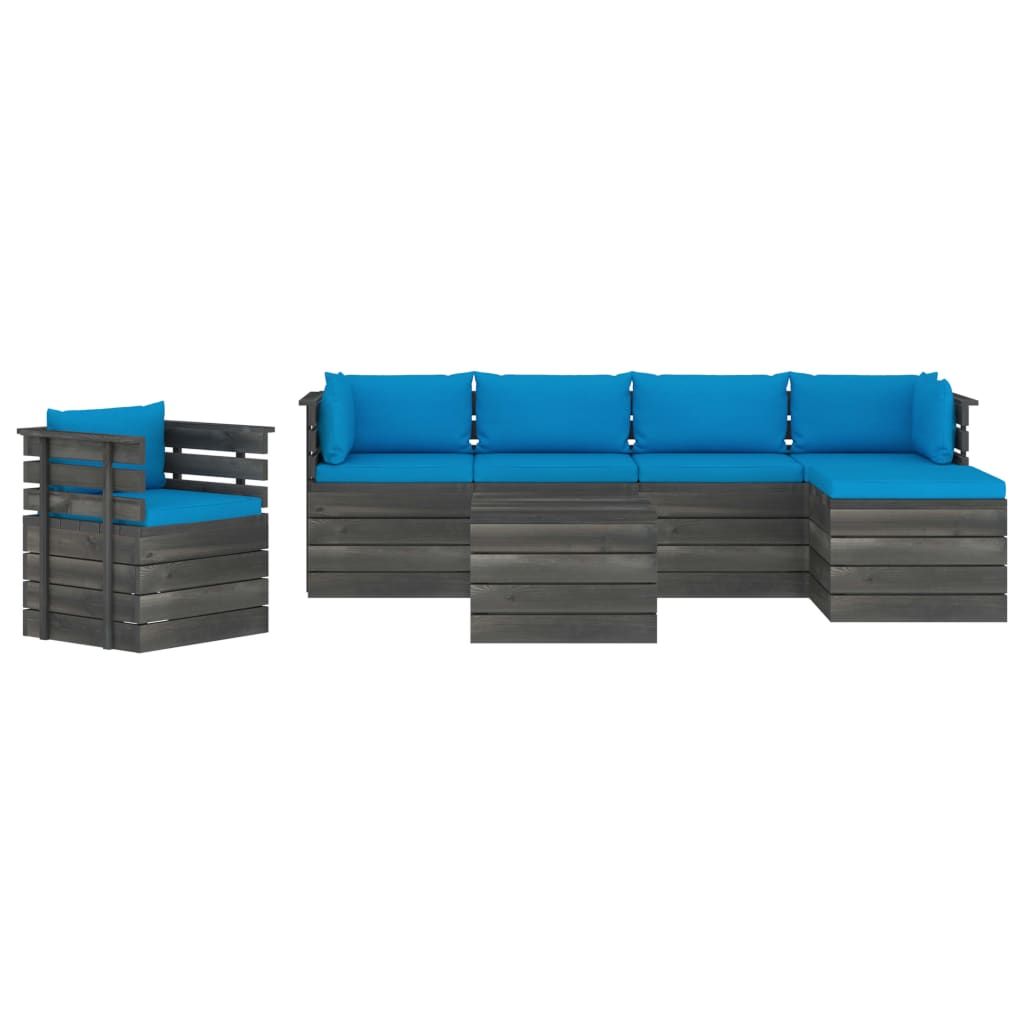 7-cz. zestaw wypoczynkowy z palet, z poduszkami, lita sosna