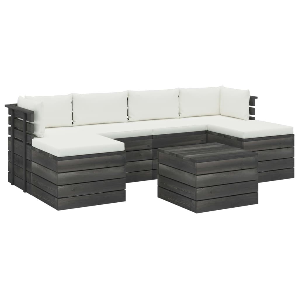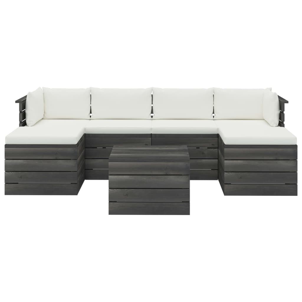 7-cz. zestaw wypoczynkowy z palet, z poduszkami, lita sosna
