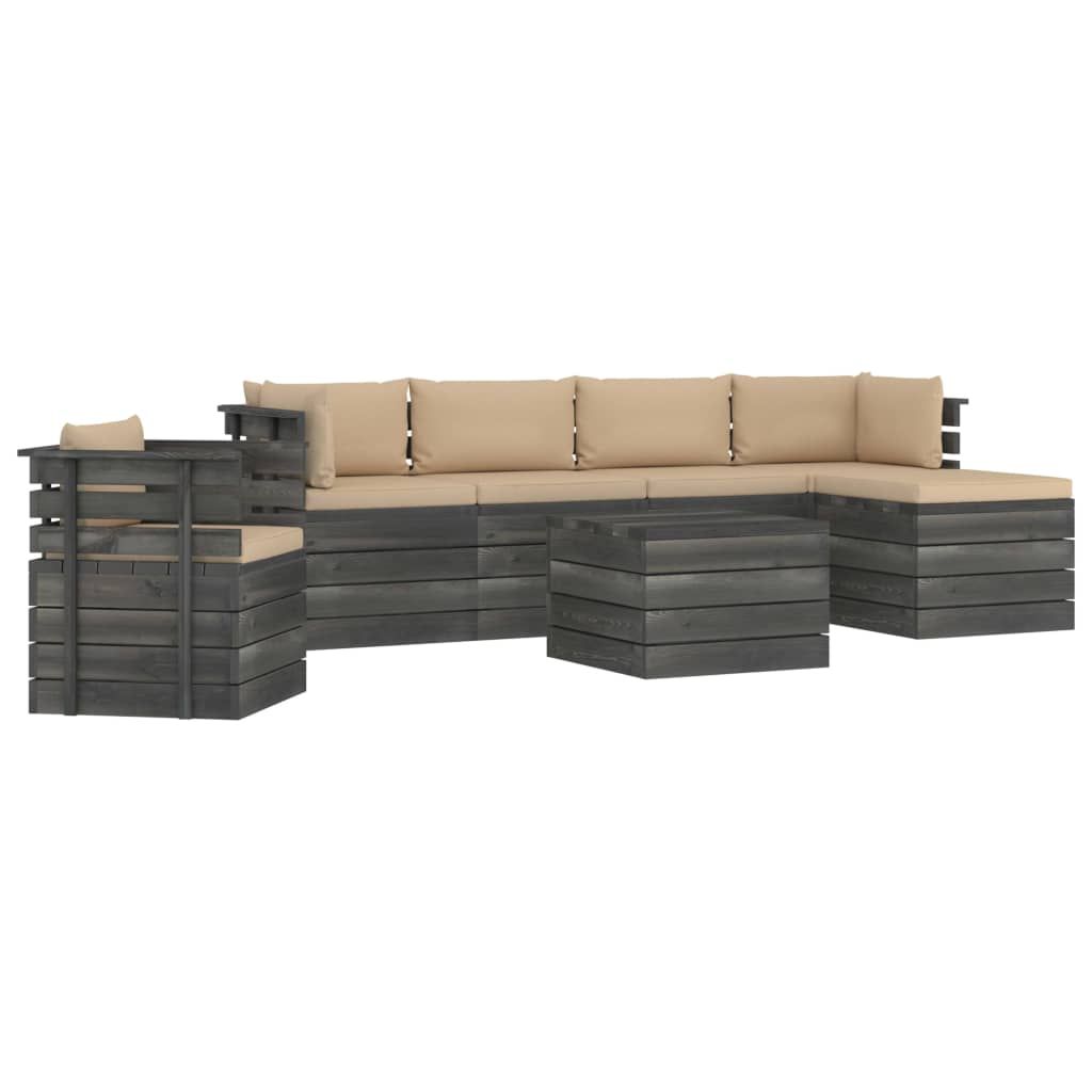 7-cz. zestaw wypoczynkowy z palet, z poduszkami, lita sosna