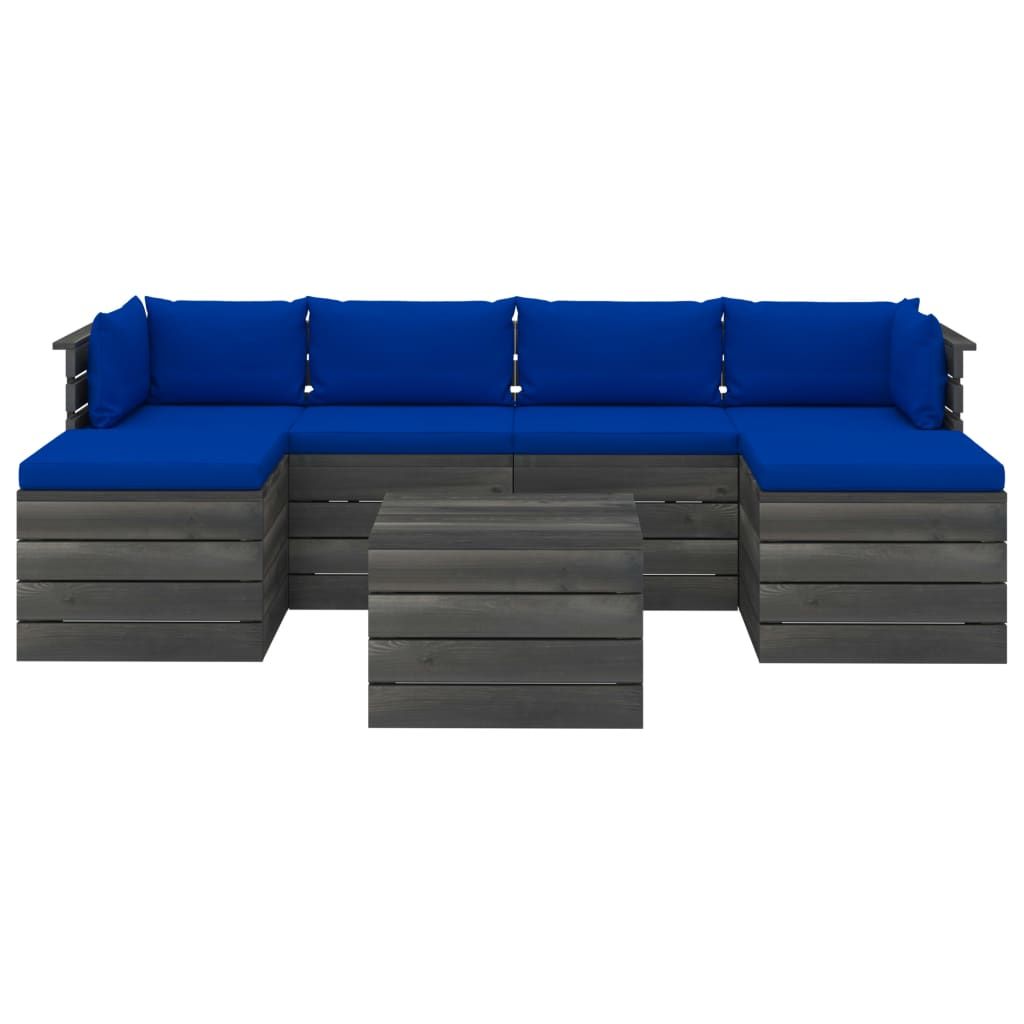 7-cz. zestaw wypoczynkowy z palet, z poduszkami, lita sosna
