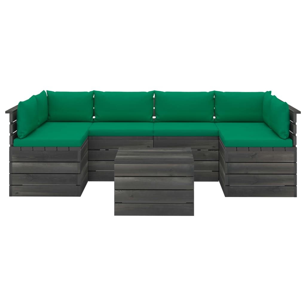 7-cz. zestaw wypoczynkowy z palet, z poduszkami, lita sosna