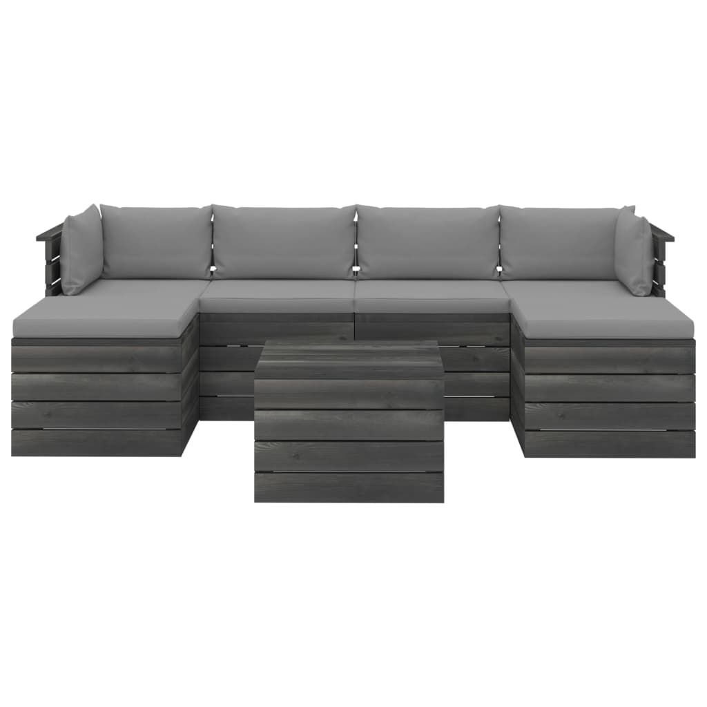 7-cz. zestaw wypoczynkowy z palet, z poduszkami, lita sosna