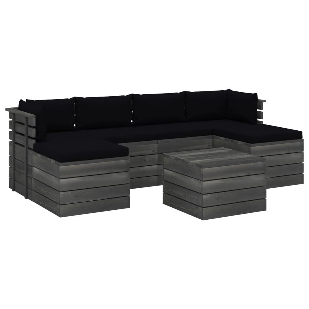 7-cz. zestaw wypoczynkowy z palet, z poduszkami, lita sosna