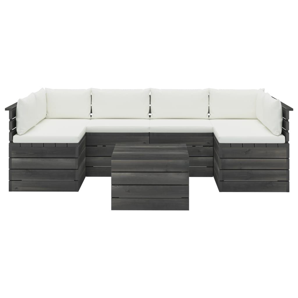 7-cz. zestaw wypoczynkowy z palet, z poduszkami, lita sosna