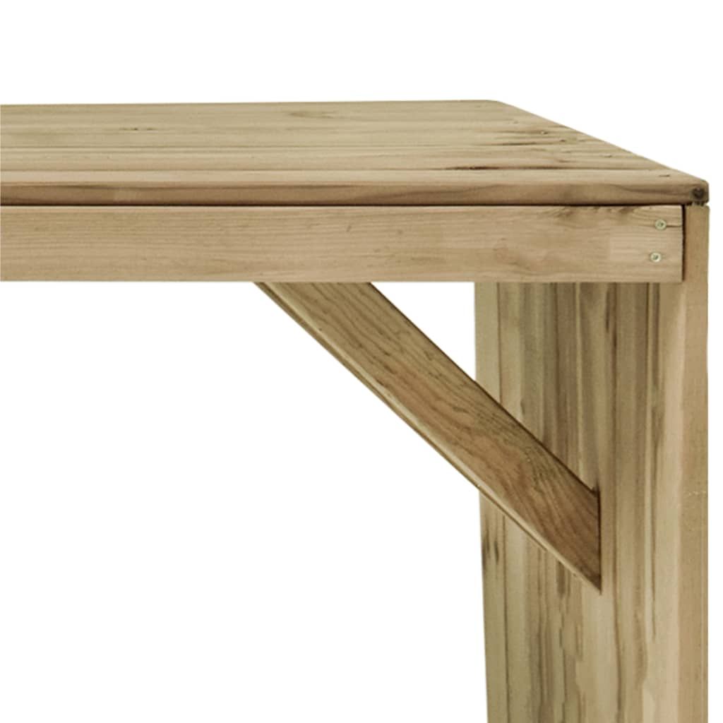 Nasz zestaw drewnianych mebli jadalnianych o prostej, a zarazem ponadczasowej formie stanie się centralnym punktem w Twoim ogrodzie, na tarasie lub patio. Wykonane z litego, impregnowanego drewna sosnowego krzesła i stół są odporne na butwienie, bardzo trwałe i odpowiednie do użytku na zewnątrz. Stół można łatwo wyczyścić wilgotną ściereczką. Podłokietniki zapewniają większy komfort podczas siedzenia. Montaż jest bardzo prosty. Prosimy mieć na uwadze, iż drewno jest produktem naturalnym i może wykazywać pewne niedoskonałości.