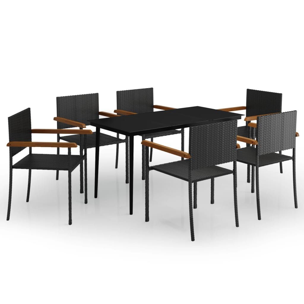 Stylowy zestaw mebli ogrodowych stanie się głównym punktem w Twoim ogrodzie lub patio! To znakomity wybór do spożywania posiłków na świeżym powietrzu lub relaksu na zewnątrz! Malowane proszkowo, stalowe ramy sprawiają, że stół i krzesła są mocne i stabilne do codziennego użytku na zewnątrz. Dzięki odpornemu na wodę rattanowi PE krzesła można łatwo wyczyścić. Sprawdzą się w codziennym użytkowaniu. Gładki, szklany blat można łatwo wyczyścić wilgotną ściereczką i doskonale nadaje się do postawienia na nim posiłków, napojów i elementów dekoracyjnych. Uwaga: aby przedłużyć żywotność mebli ogrodowych, zalecamy zabezpieczenie ich wodoodpornym pokrowcem.