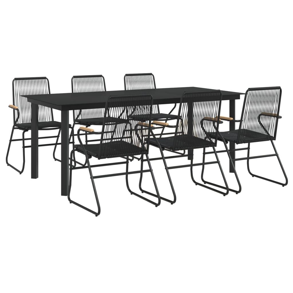 7-częściowy zestaw mebli ogrodowych, czarny, rattan PVC