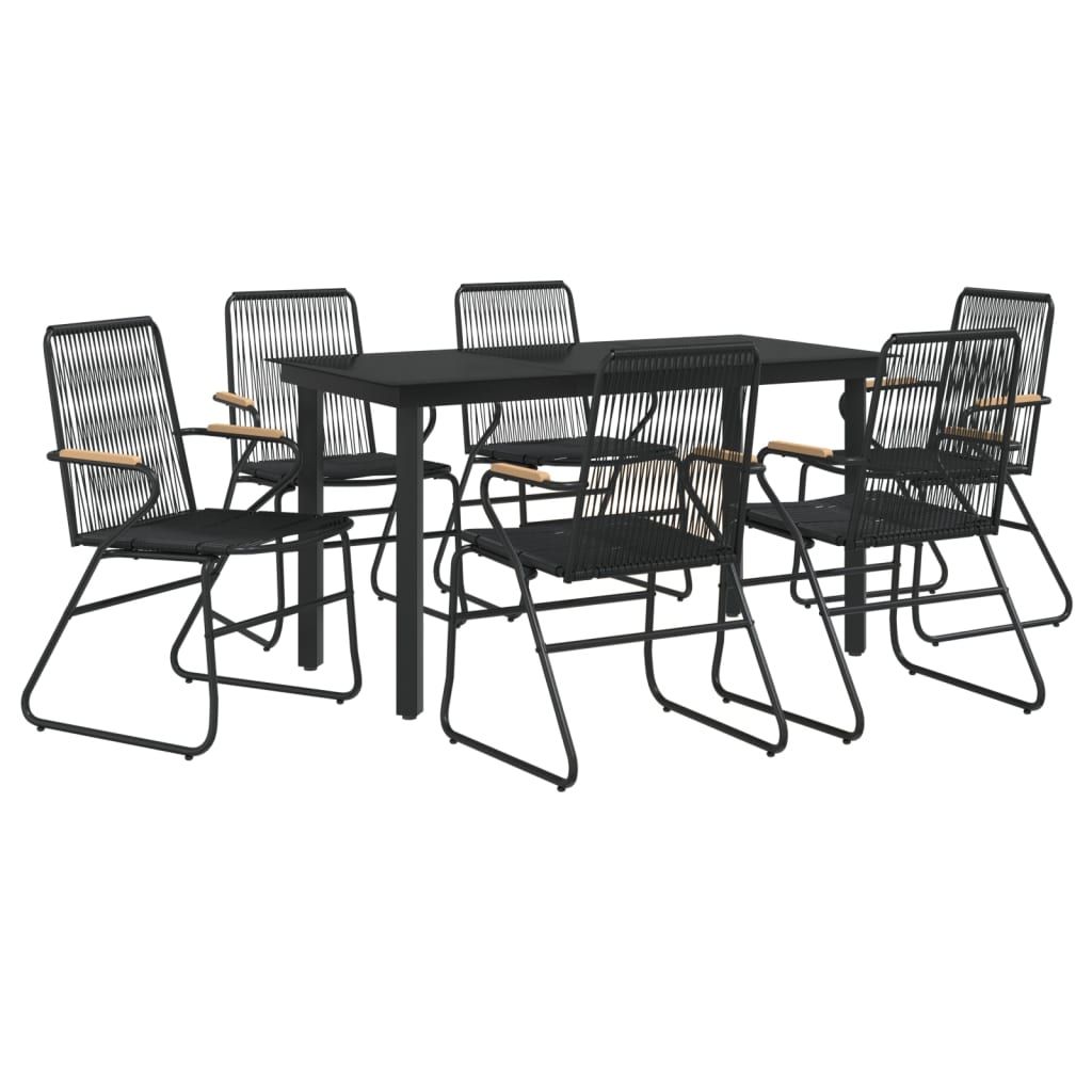 7-częściowy zestaw mebli ogrodowych, czarny, rattan PVC