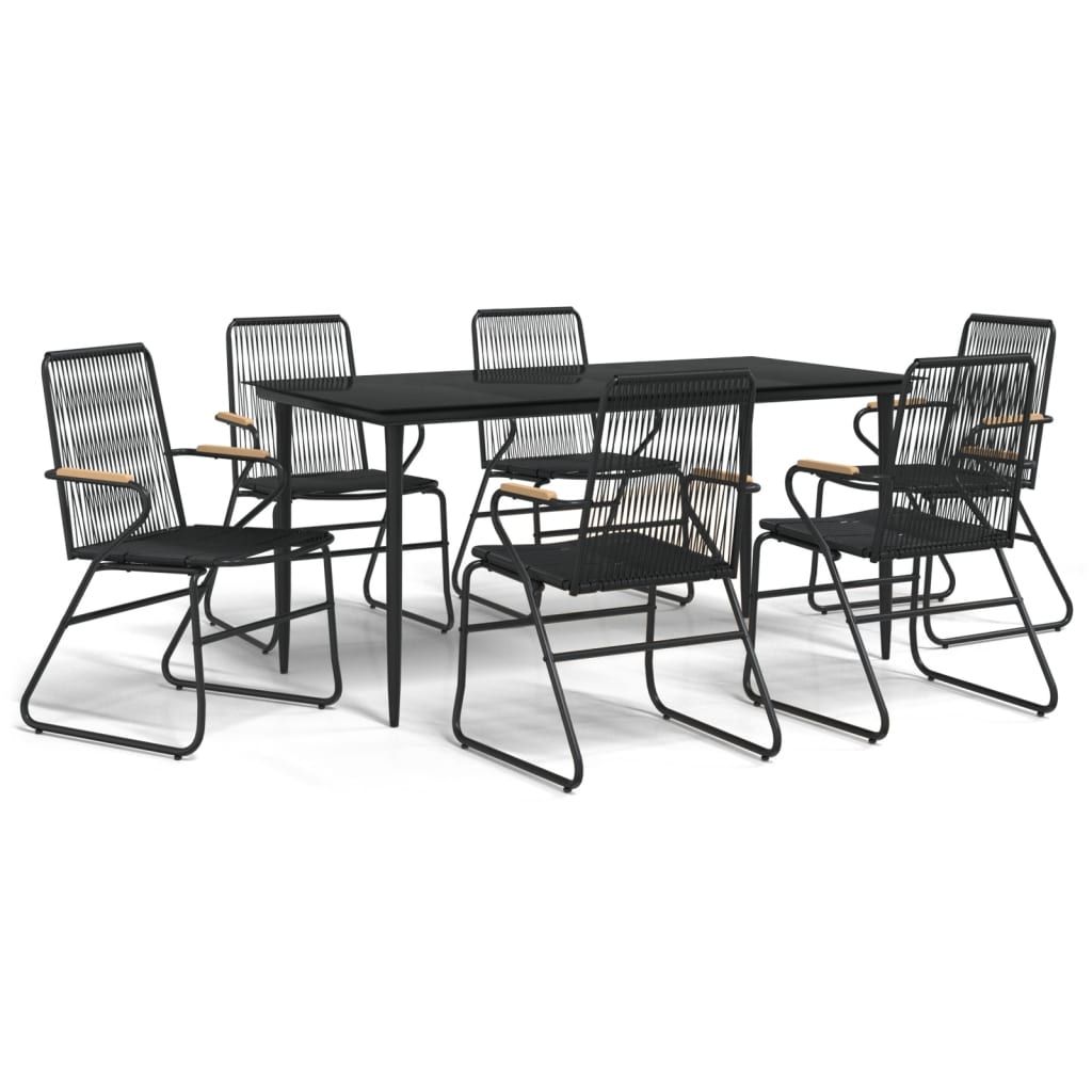 7-częściowy zestaw mebli ogrodowych, czarny, rattan PVC