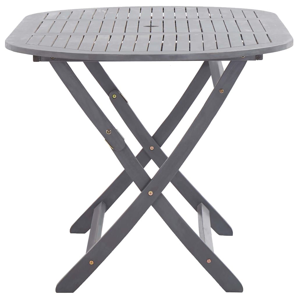 Ten stylowy i nowoczesny drewniany zestaw jadalniany składa się z 1 owalnego stołu i 6 rozkładanych krzeseł oraz doda luksusu każdej kolacji. Zarówno stół, jak i krzesła wykonane są z litego drewna akacjowego o poszarzanym wykończeniu. Meble są odporne na warunki atmosferyczne, trwałe i łatwe do czyszczenia wilgotną ściereczką. Ze względu na solidną, drewnianą konstrukcję zestaw ten jest bardzo stabilny i bezpieczny. Zapewni Ci komfort i wygodę spędzania czasu z rodziną i przyjaciółmi. Ponadto stół i krzesła można łatwo złożyć, co ułatwia przechowywanie i transport, gdy nie są używane. W skład przesyłki wchodzi 1 owalny stół i 6 składanych krzeseł
