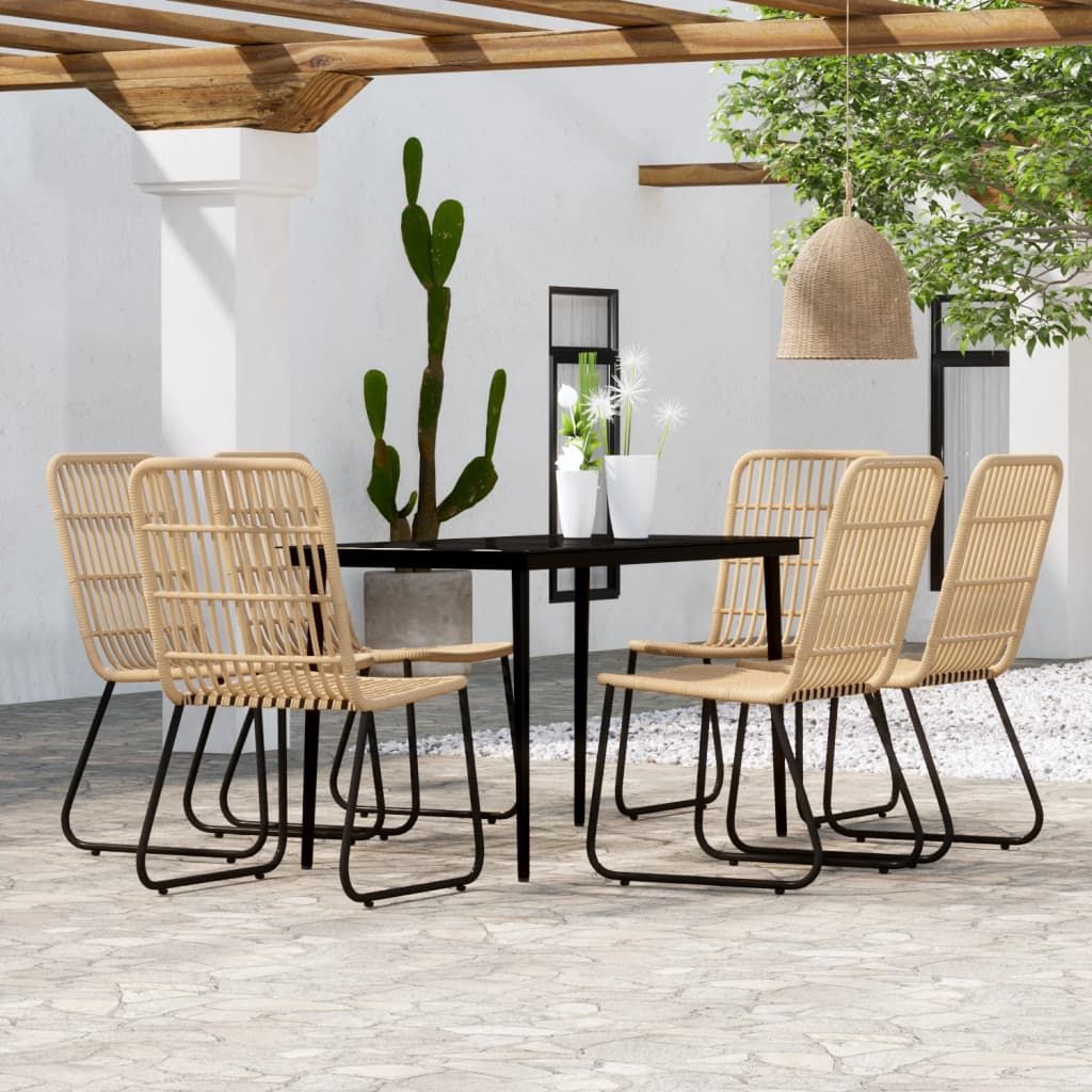 Ten pięknie zaprojektowany zestaw ogrodowy będzie centralnym punktem Twojego ogrodu lub patio! Stalowe ramy sprawiają, że stół i krzesła są solidne i stabilne. Zestaw ten jest również lekki, dzięki czemu wszystkie jego elementy można łatwo przestawiać. Co więcej gładki, szklany blat jest łatwy do czyszczenia wilgotną ściereczką i doskonale nadaje się do postawienia posiłków, napojów i elementów dekoracyjnych. Krzesła ogrodowe wykonano z rattanu PE, dzięki czemu są odporne na niekorzystne warunki pogodowe i promienie UV. Ponadto zaokrąglone oparcia zapewniają jeszcze większy komfort siedzenia. Uwaga: Uwaga: aby przedłużyć żywotność mebli ogrodowych, zalecamy zabezpieczenie ich wodoodpornym pokrowcem.