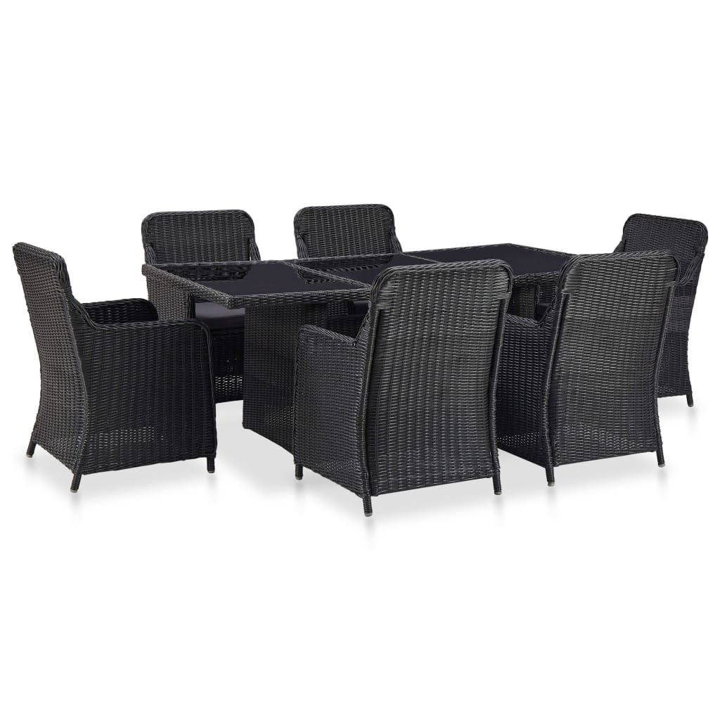 7-częściowy zestaw mebli ogrodowych, polirattan, czarny