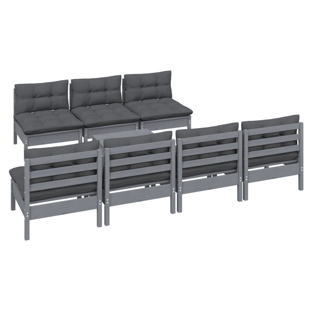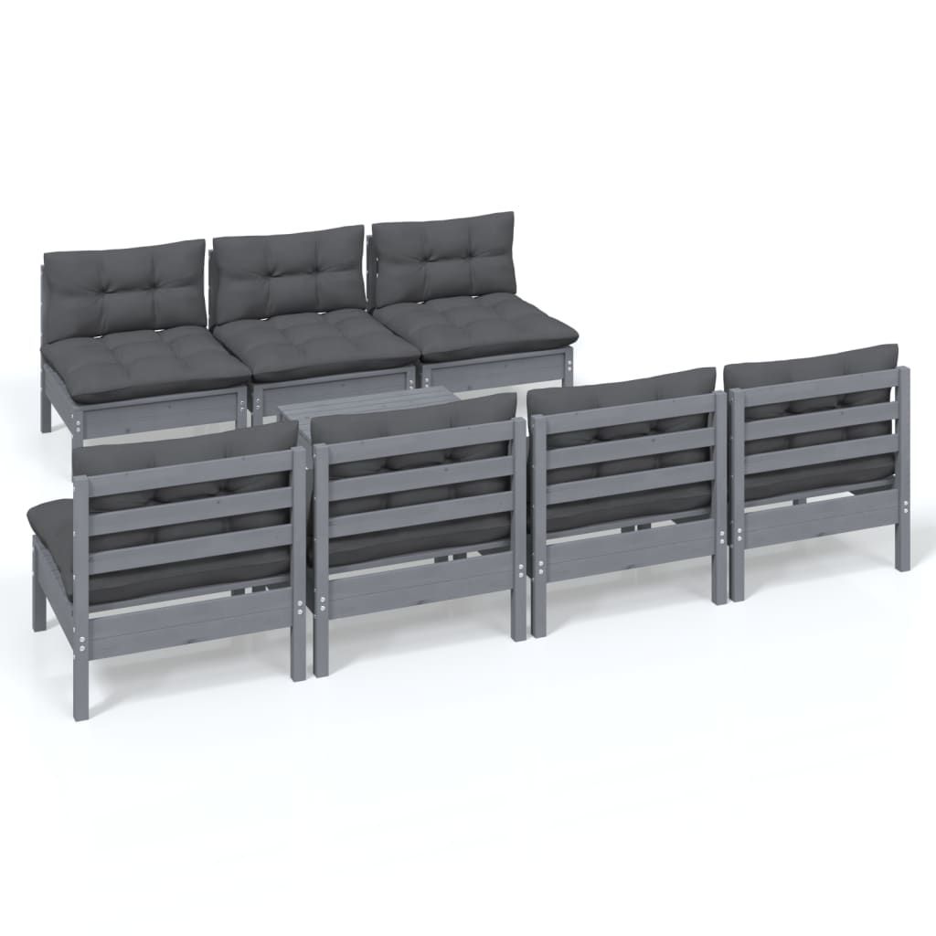 8-cz. ogrodowy zestaw wypoczynkowy, antracytowe poduszki, sosna