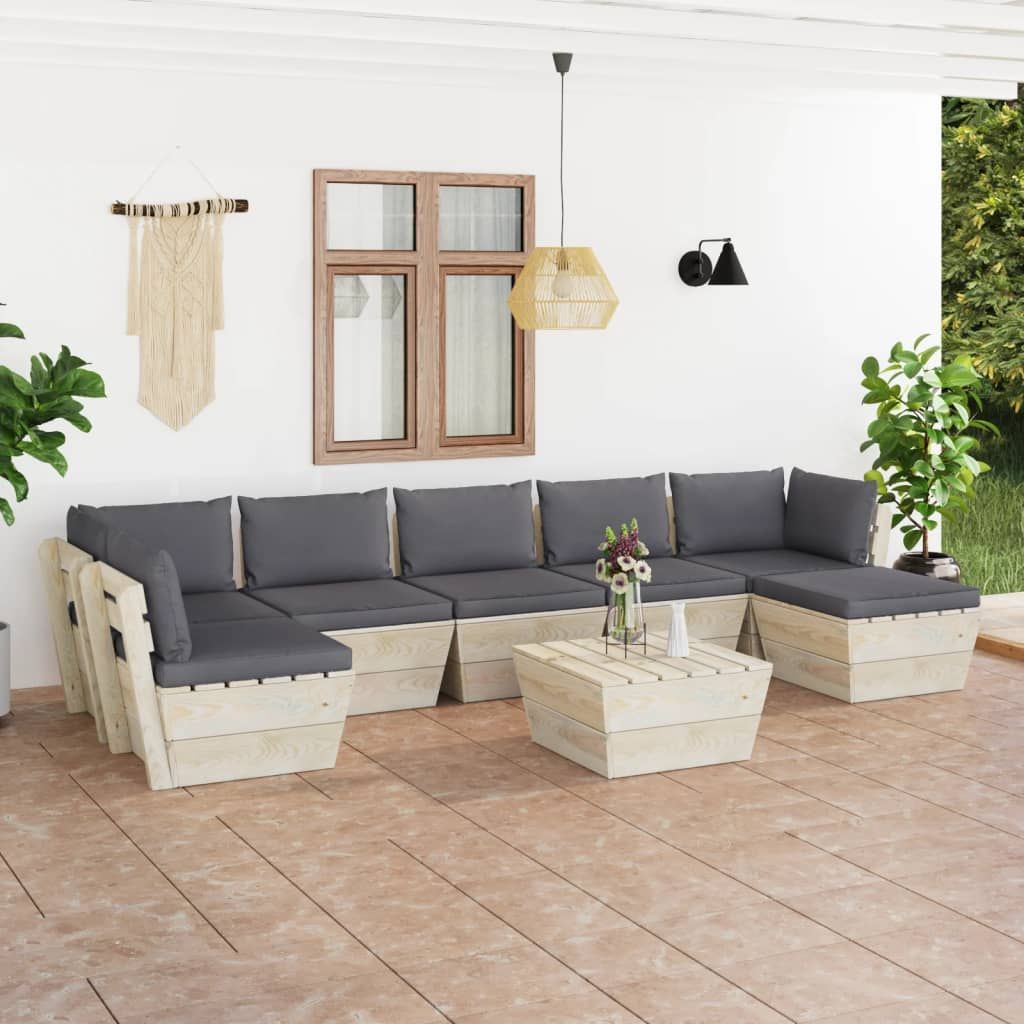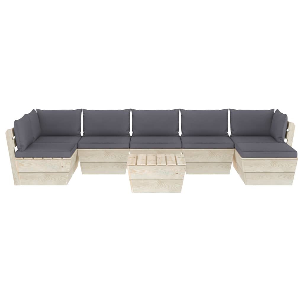 8-cz. ogrodowy zestaw wypoczynkowy z palet, poduszki, świerk