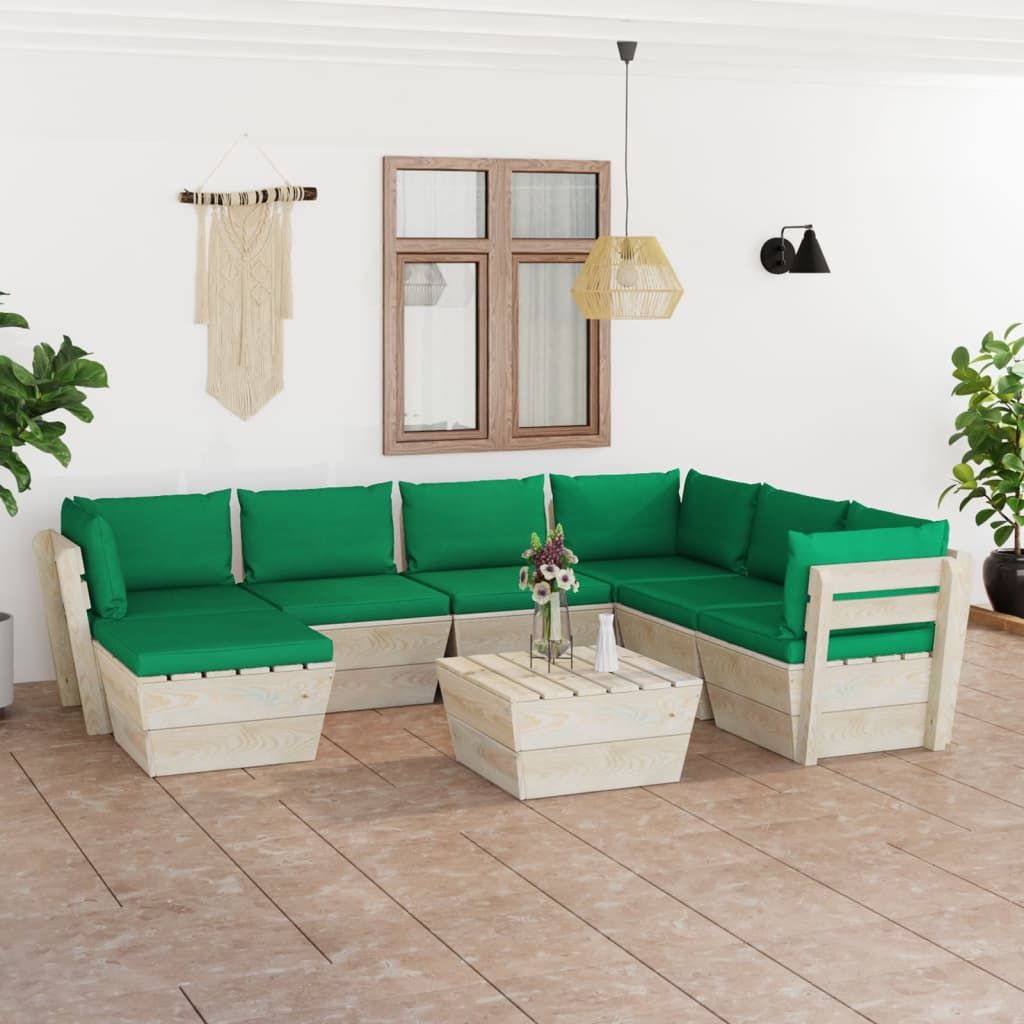 8-cz. ogrodowy zestaw wypoczynkowy z palet, poduszki, świerk
