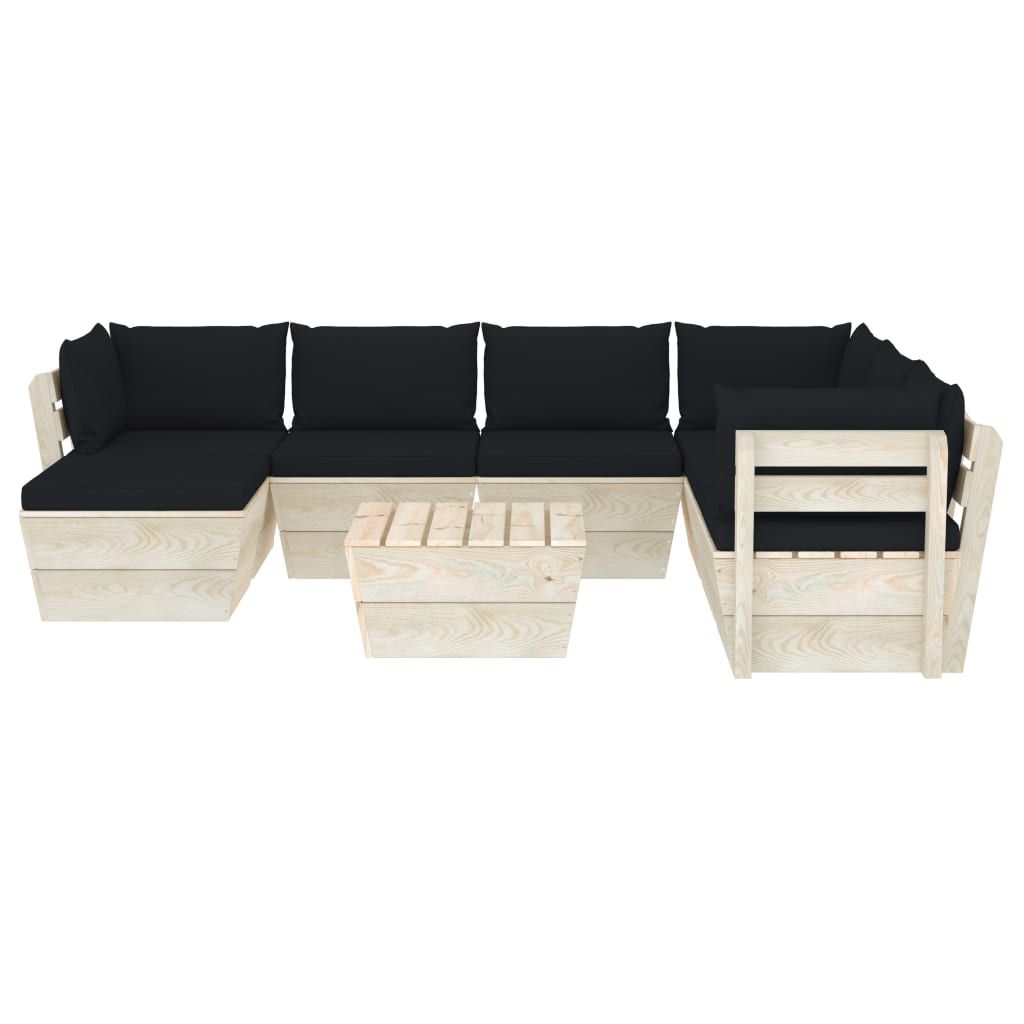 8-cz. ogrodowy zestaw wypoczynkowy z palet, poduszki, świerk