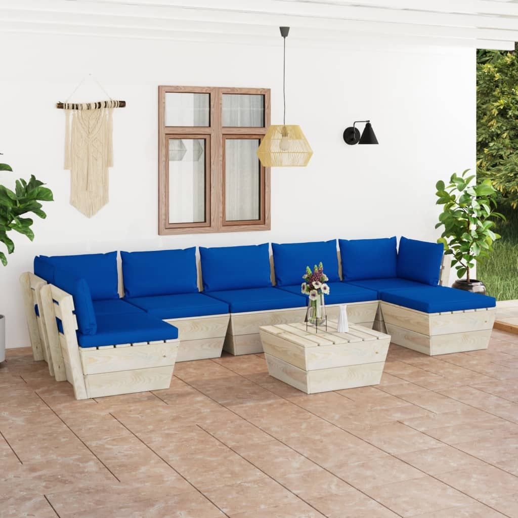 8-cz. ogrodowy zestaw wypoczynkowy z palet, poduszki, świerk